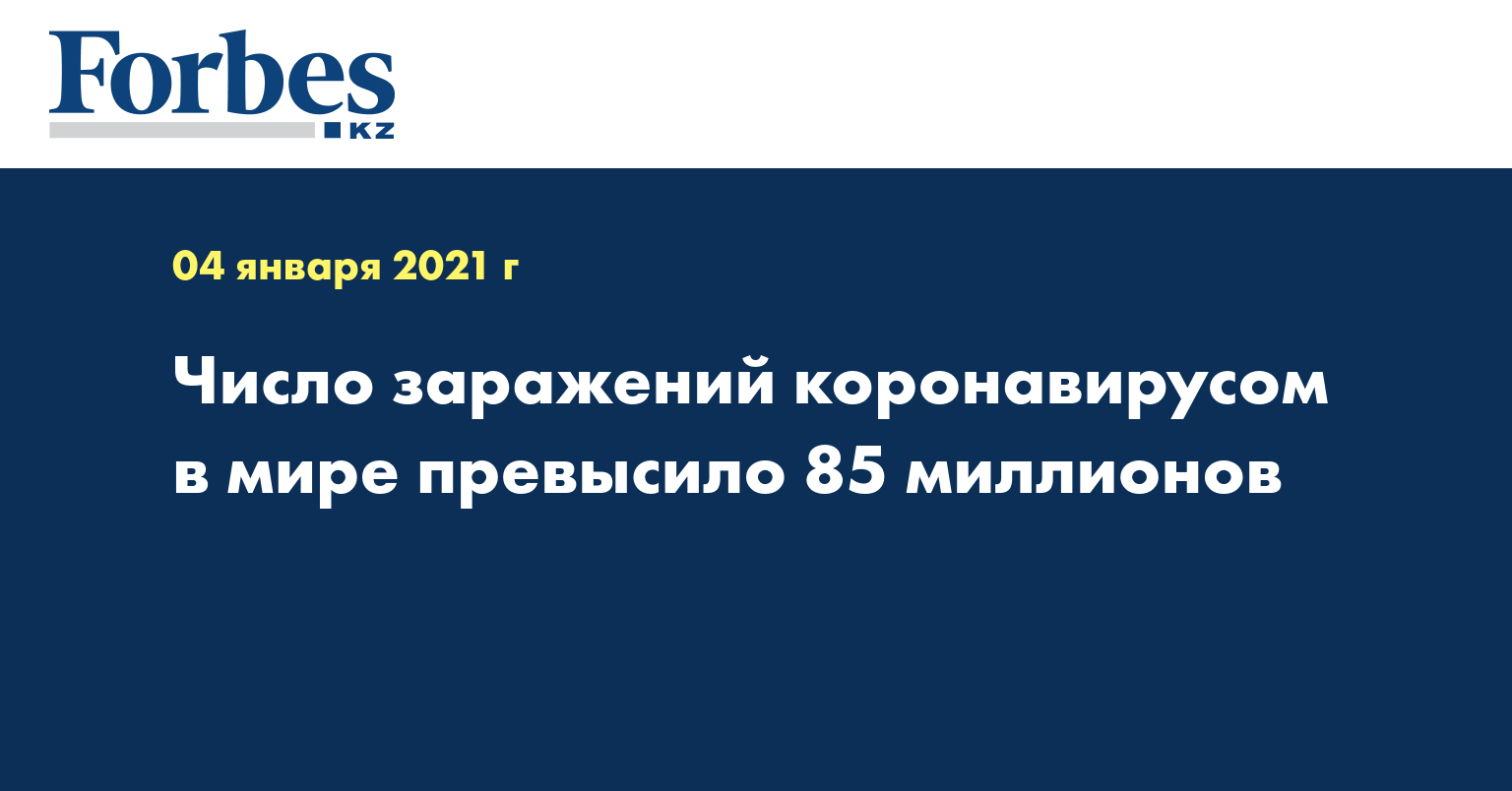 Число подтвержденных случаев заражения коронавирусом в мире превысило отметку в 85 миллионов, сообщает университет Джонса Хопкинса, который суммирует данные федеральных и местных властей, а также СМИ и других открытых источников, передает РИА Новости.