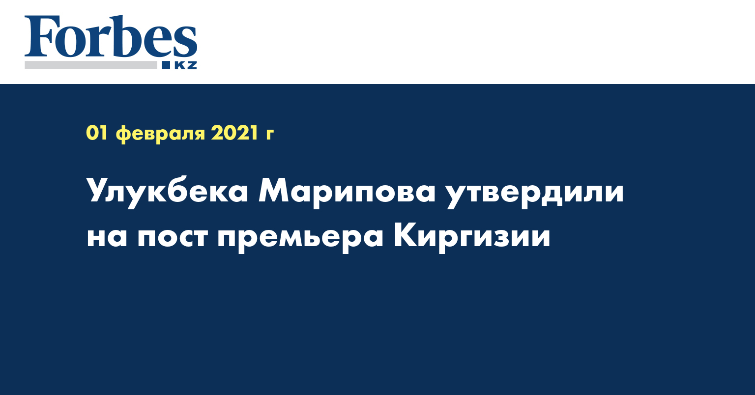 Коалиция большинства в парламенте Киргизии утвердила кандидатуру председателя Счетной палаты Улукбека Марипова на должность премьера республики, такое решение принято на заседании законодательного собрания в понедельник, передает РИА Новости.