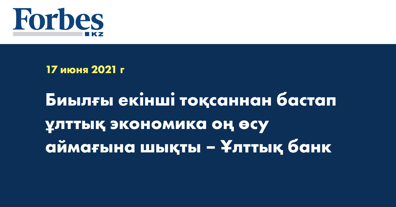 Оның айтуынша, биылғы 2-тоқсаннан бастап ұлттық экономика оң өсу аймағына шықты. Осы жылғы 5 айдың қорытындысы бойынша ішкі жалпы өнімнің өсу қарқыны 1,6%-ды құрады. Қызмет көрсету секторының жандана түсуі, экономиканың шикізат емес секторларында жоғары инвестициялық белсенділіктің сақталуы экономиканы қалпына келтіруге ықпал етіп отыр.