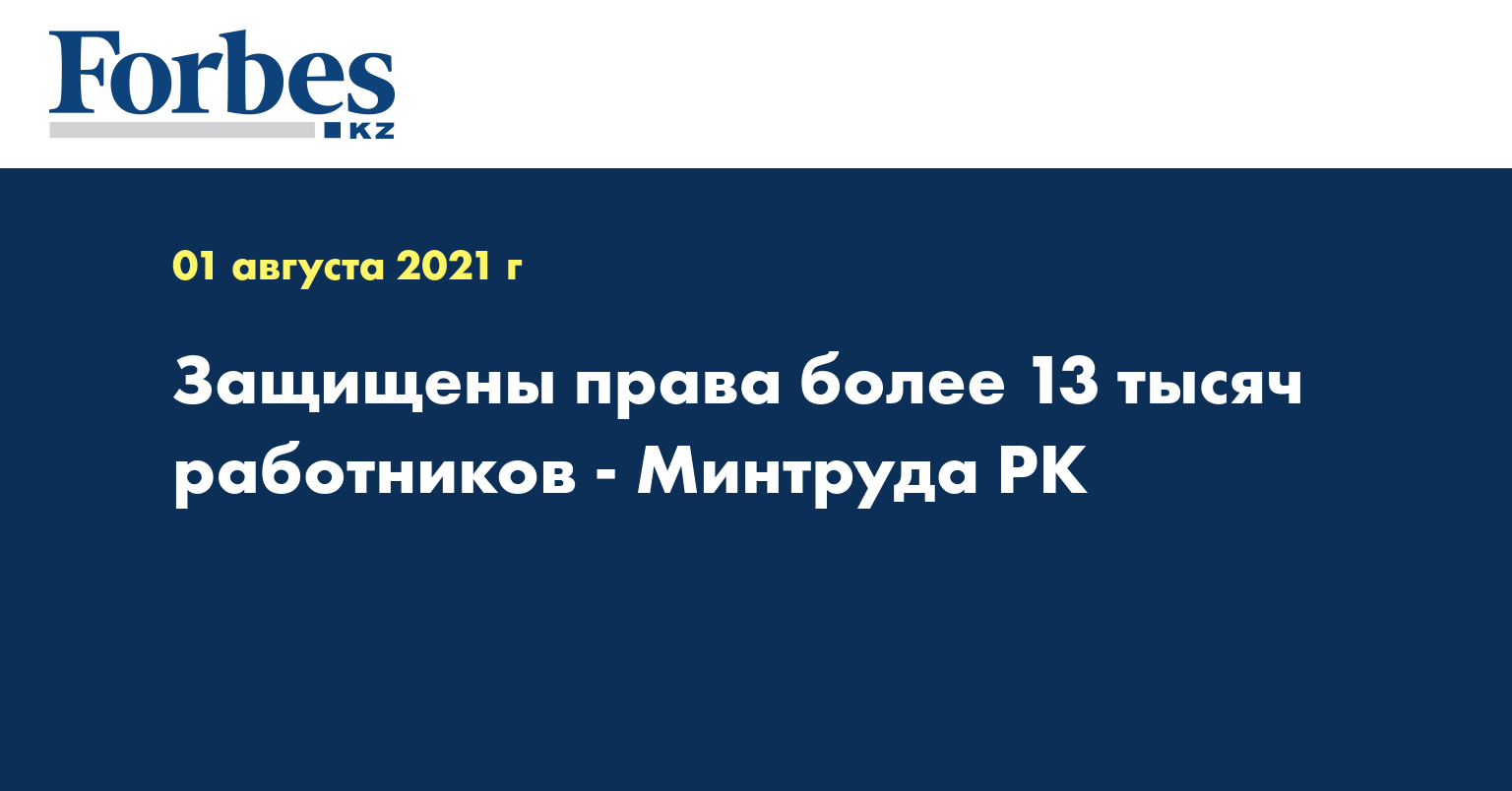 С начала года госинспекторами труда защищены права более 13,2 тыс. работников, передает МИА «Казинформ» со ссылкой на пресс-службу Минтруда РК.