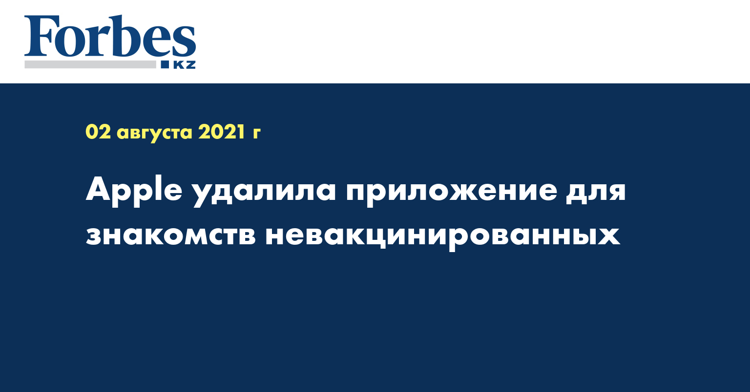 Компания Apple удалила из App Store приложение для знакомств невакцинированных Unjected из-за "ненадлежащего отношения к пандемии COVID-19", передает РИА Новости со ссылкой на агентство Блумберг и письмо, которое Apple отправила Unjected.