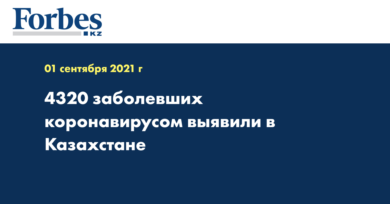 За прошедшие сутки в Казахстане выявлено 4320 заболевших с положительным ПЦР на коронавирусную инфекцию. Об этом передает coronavirus2020.kz.