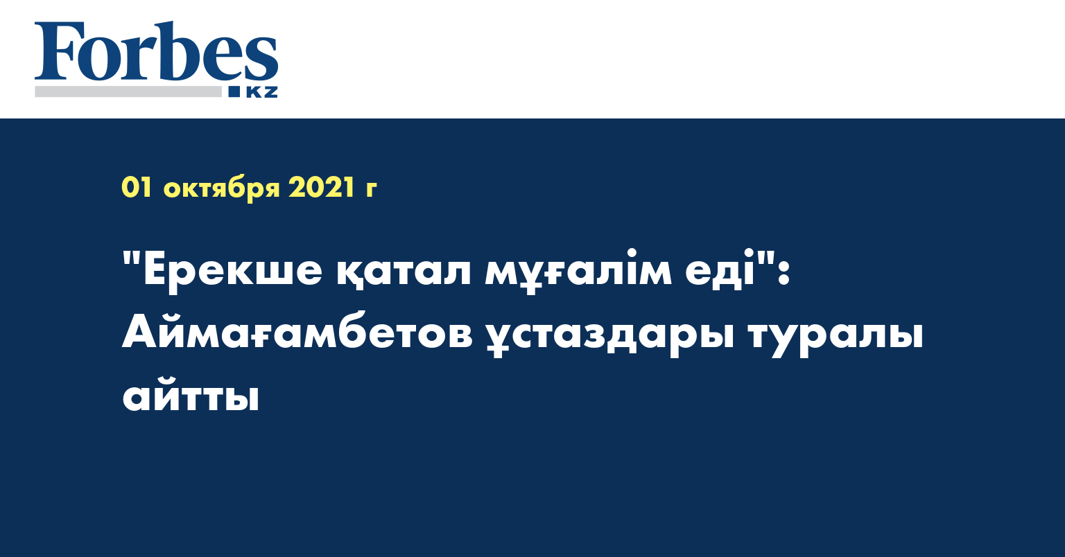 Аймағамбетов бастауыш сыныптарда оқып жүргенде өзін ерекше сезінгенін, мұғалімнің оқушыларға деген қамқорлығы мен сүйіспеншілігін көріп өскенін атап өтті.
