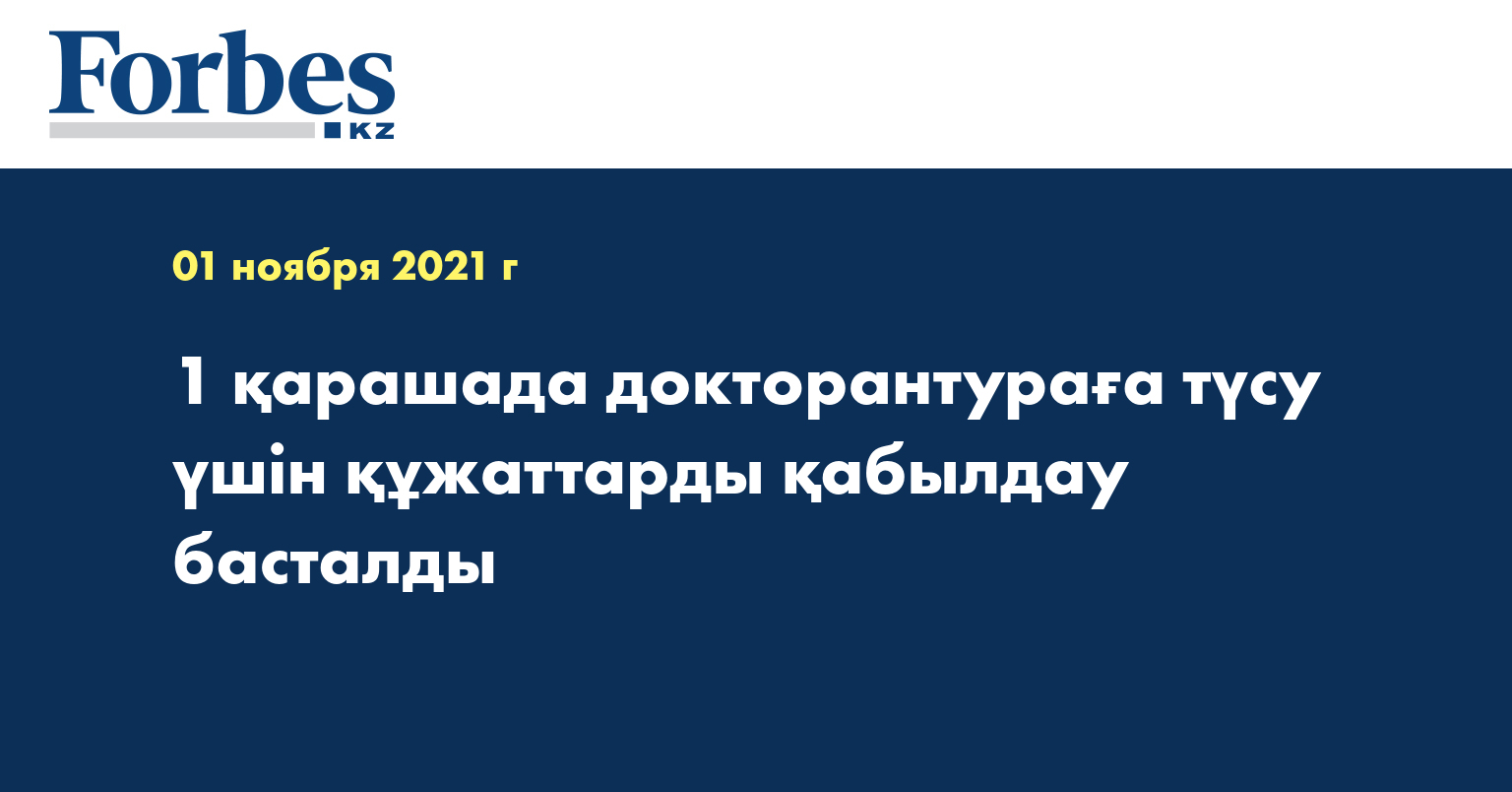 1 қараша күні докторантураға түсу үшін екінші емтиханға құжаттарды қабылдау басталып, 2021 жылдың 15 қарашасына дейін жалғасады, ҚР БҒМ баспасөз қызметі деп хабарлайды.