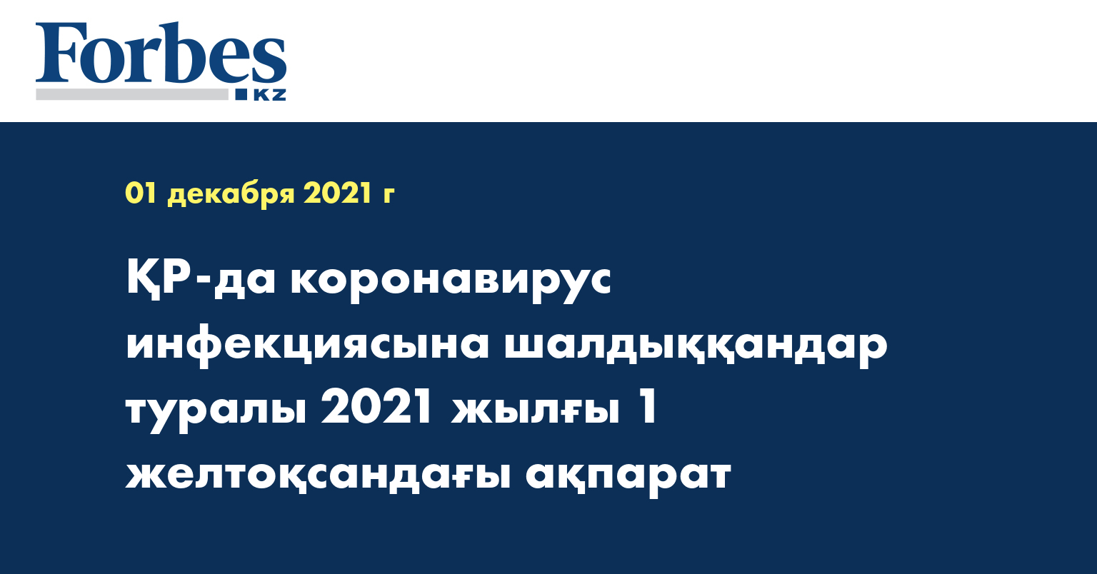 1 желтоқсандағы мәлімет бойынша, 25 694 адам коронавирус инфекциясынан (–22 206+ және 3 488 КВИ-) емделуде, олардың ішінде 5 395 пациент стационарда, 20 299 науқас амбулаториялық деңгейде ем қабылдауда.