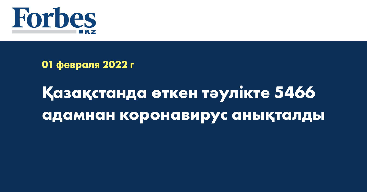 Қазақстанда өткен тәулікте 5466 адамнан коронавирус инфекциясы ПТР арқылы анықталды, деп хабарлайды coronavirus2020.kz.