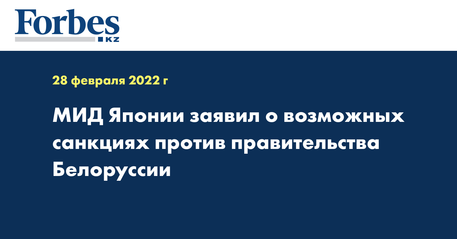 "По вопросу вторжения России на Украину, мы находимся в тесном взаимодействии с международным сообществом, прежде всего, с G7. Белоруссия разрешила использование своей территории российскими войсками и поддерживает военные действия России. Япония жестко осуждает эту страну. Америка уже ввела санкции против отдельных лиц из Белоруссии, а также страны "семерки" высказались за применение санкций. Япония тоже рассматривает санкции против высокопоставленных чиновников правительства этой страны и других лиц", — сказал Хаяси.