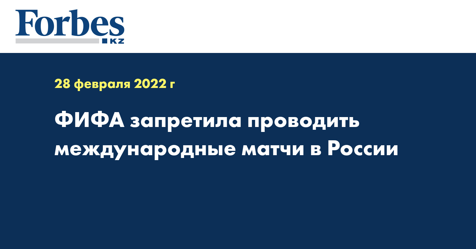 Бюро совета Международной федерации футбола ФИФА единогласно запретило проводить в России международные матчи, передает РИА Новости.