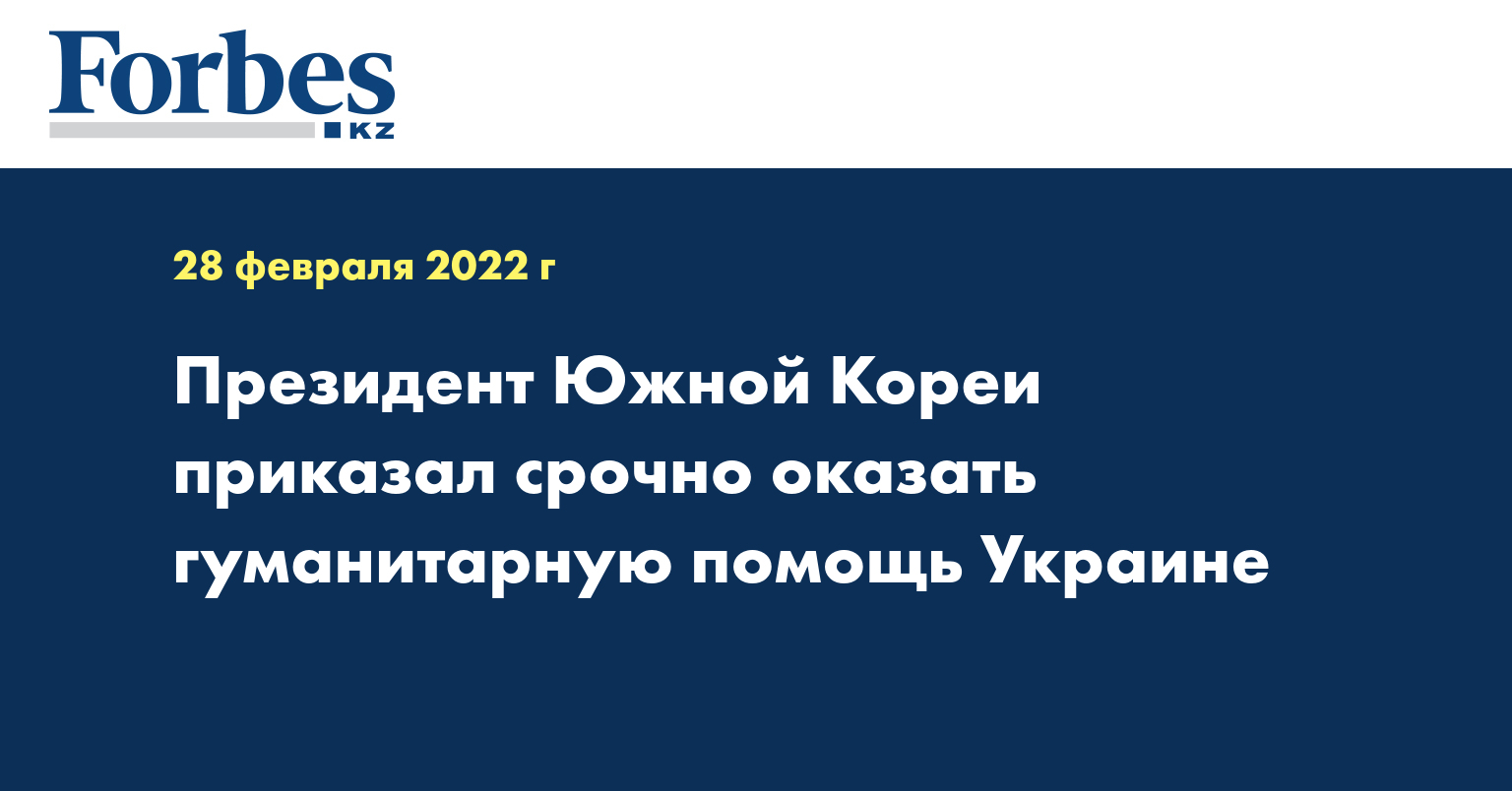 Президент Южной Кореи Мун Чжэ Ин приказал правительству срочно организовать гуманитарную помощь Украине, сообщила представитель президентской администрации Республики Корея Пак Кён Ми.