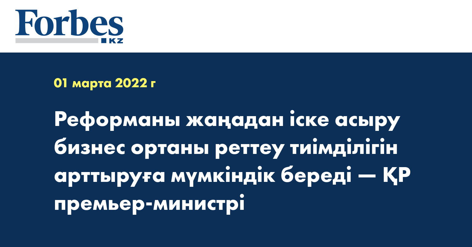 Реализация реформы «с чистого листа» позволит повысить эффективность регулирования бизнес-среды – премьер-министр РК