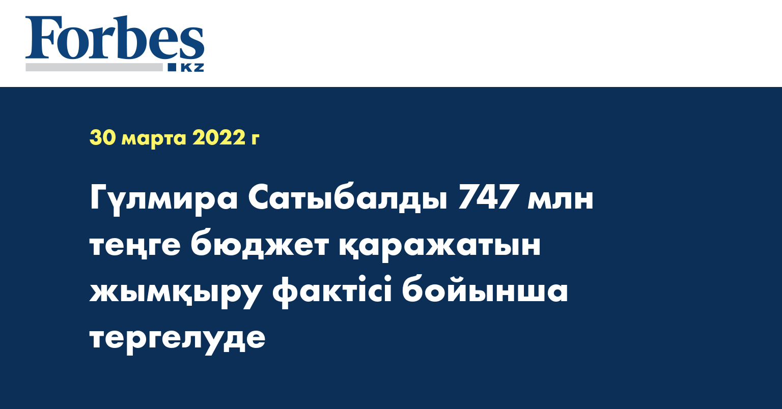 «Шымкент қаласы бойынша Сыбайлас жемқорлыққа қарсы қызметі «Шымкент қаласының жолаушылар көлігі және автомобиль жолдары басқармасы» ММ лауазымды тұлғалары мен «Ария-Жаңа Астана» ЖШС басшылығына, оның ішінде Гүлмира Сатыбалдыға қатысты 2021 жылы нақты орындалмаған құрылыс-монтаждау жұмыстары үшін аса ірі мөлшерде (747 млн теңге) бюджет қаражатын жымқыру фактісі бойынша сотқа дейінгі тергеу жүргізуде», - делінген агенттік хабарламасында.