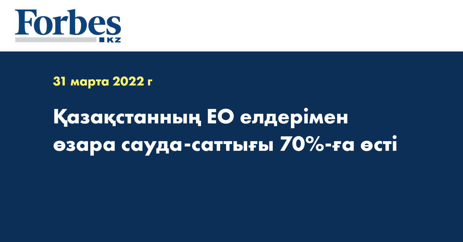Қазақстан мен Еуропа елдері арасындағы тауар айналымы 2022 жылғы қаңтар-ақпанда 6,0 млрд долларды құрады. Бұл өткен жылдың сәйкес кезеңімен салыстырғанда 70,9%-ға жоғары ($3,5 млрд), деп хабарлайды «QazTrade» АҚ-ға .