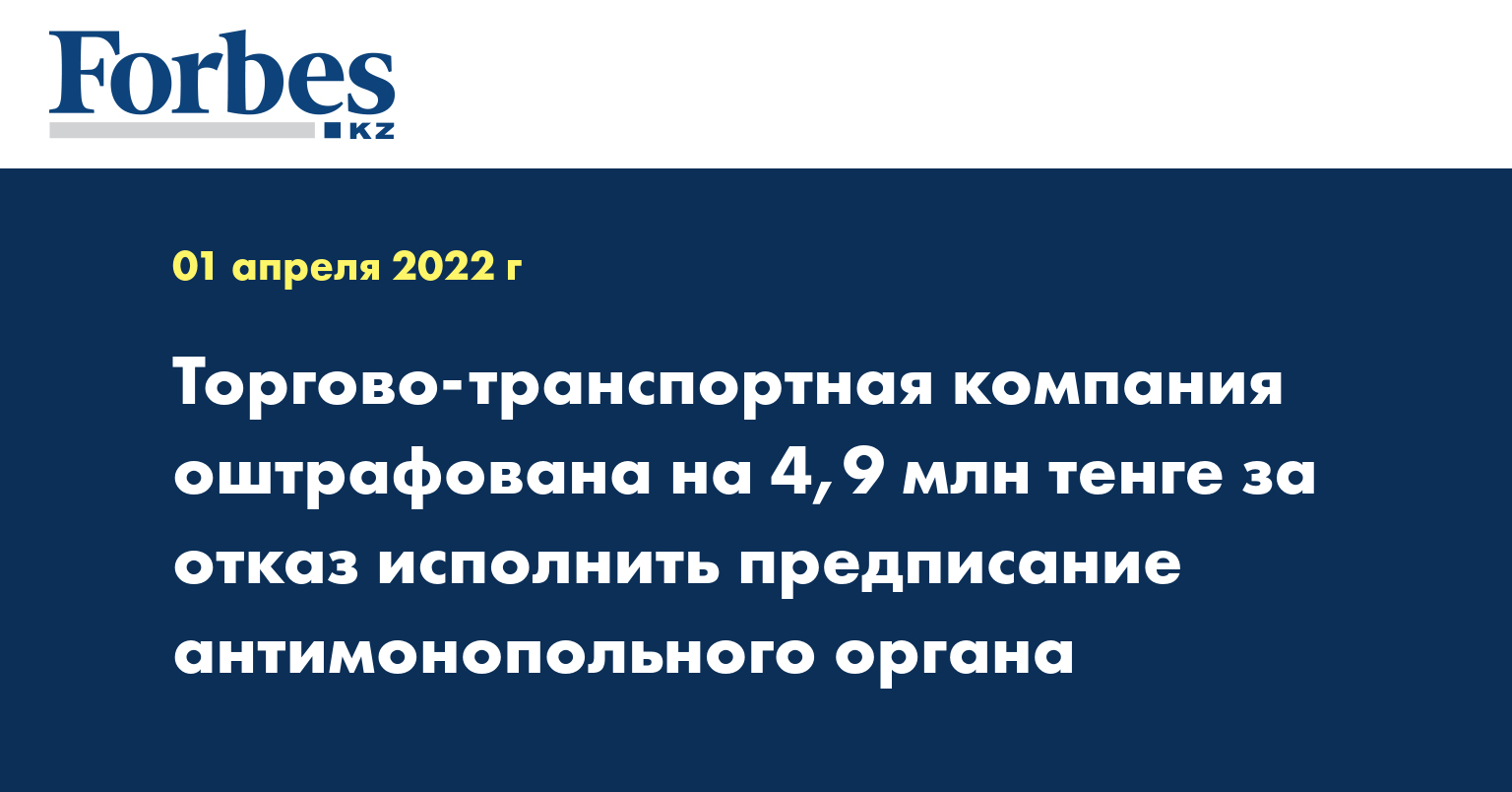 Однако, Торгово-транспортная компания отказалась от исполнения предписания, в результате чего антимонопольный департамент по Туркестанской области, в соответствии со статьей 162 Кодекса Республики Казахстан «Об административных правонарушениях», наложил на товарищество административный штраф в размере 4 900 800 тенге.