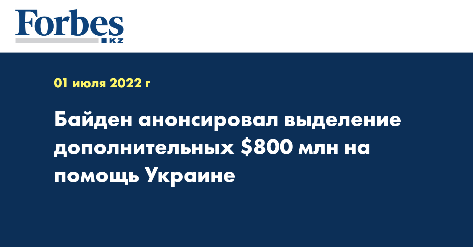 США в ближайшие дни объявят о новом пакете помощи Украине на $800 млн, заявил Байден. Деньги пойдут на вооружение. С начала российской «спецоперации» США выделили Украине помощь на сумму больше $6 млрд, передает Forbes.ru