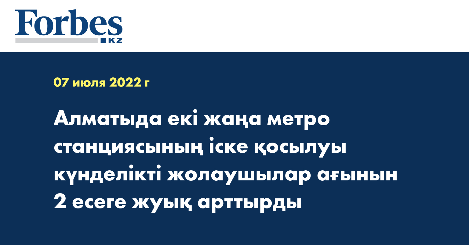 Көлік инфрақұрылымын дамыту - қала тұрғындарының жайлы өмір сүруі мен жолдағы кептелісті азайту индикаторларының бірі. Биыл 30 мамырда метроның «Сарыарқа» және «Б.Момышұлы» 2 станциясы ашылды, бұл күнделікті жолаушылар ағымын 1,9 есе 86 мың адамға дейін арттырды. Бұл туралы Алматы әкімі Ерболат Досаев Орталық коммуникациялар қызметінде өткен брифингте хабарлады.