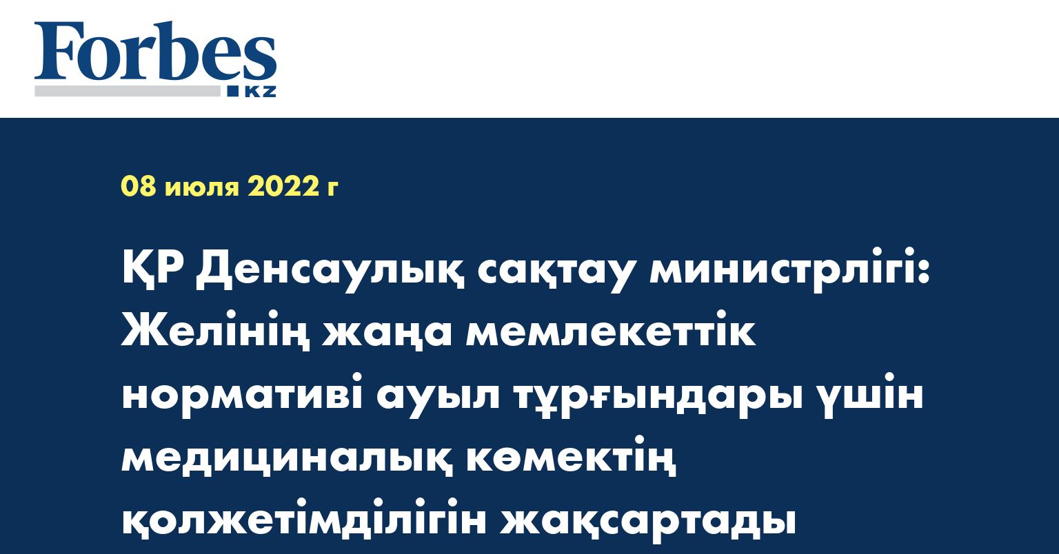 Денсаулық сақтау министрлігі шалғай орналасқан ауылдарды қоса алғанда, ауылдық елді мекендердің тұрғындары үшін медициналық көмектің қолжетімділігін арттыру мақсатында Денсаулық сақтау ұйымдары желісінің мемлекеттік нормативіне өзгерістер енгізді. Осы өзгерістерге сәйкес, енді халық саны 50 адамға дейінгі елді мекендер медицина қызметкерімен үйде қамтамасыз етілетін болады, бұрын бұл ауылдар мұндай мүмкіндікке ие болмаған.