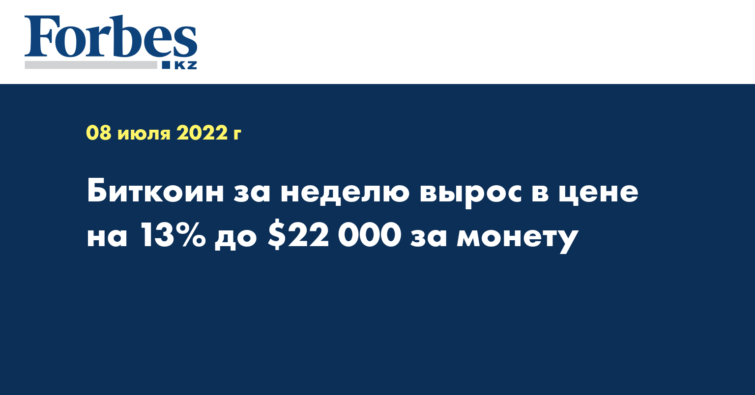 Курс биткоина впервые с середины июня превысил уровень в $22 000. Капитализация крипторынка снова вернулась к $1 трлн, а недельный прирост крупнейшей криптовалюты может составить 13%. Это самый большой прирост за неделю с 2021 года, передает Forbes.ru