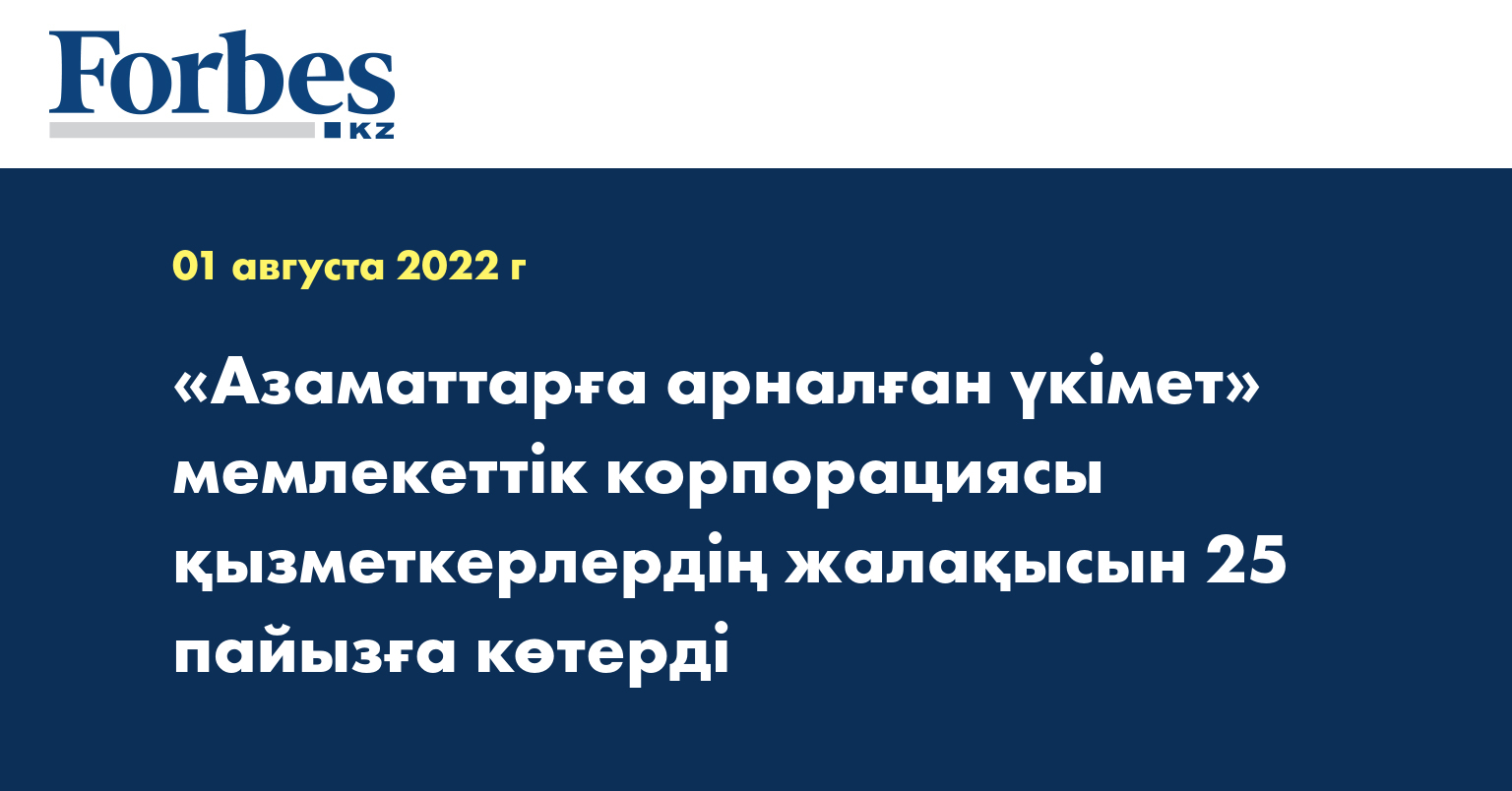 «Азаматтарға арналған үкімет» мемлекеттік корпорациясы «Халықтың табысын арттырудың 2025 жылға дейінгі бағдарламасы» кешенді жоспарын орындау аясында биыл шілдеден бастап өз қызметкерлерінің жалақысын 25 пайызға арттырды.