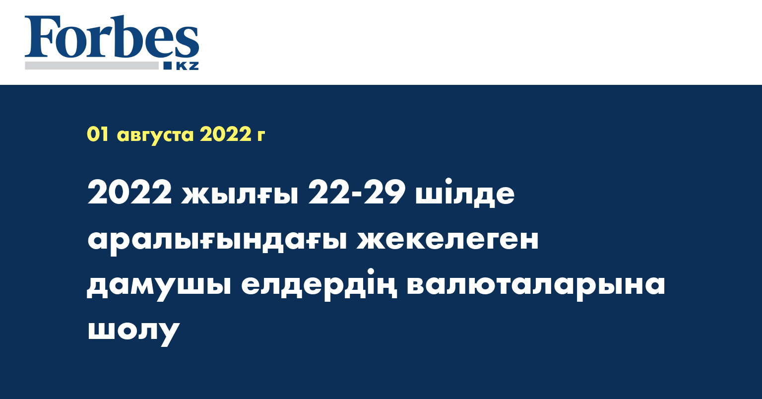 Сауда-саттық қорытындысы бойынша, 29 шілдеде теңгенің нарықтық бағамы бір аптада 1,4%-ға (483,88 теңгеден) нығайып, 1 АҚШ доллары үшін 477,09 теңге деңгейінде қалыптасты. Сыртқы валюта нарығында бірқатар маңызды оқиға болды. Оның ішіндегі маңыздысы – шілдедегі отырыстың қорытындысы бойынша АҚШ ФРЖ-ның есептік мөлшерлемені 2,35-2,5%-ға дейін 75 б.п. арттыруы болды. Бұл көптеген талдаушылардың болжамына сәйкес келеді. АҚШ экономикасының жай-күйі туралы деректердің шығуы (ЖІӨ екінші тоқсанда жылдық есеппен 0,9%-ға қысқарды) және АҚШ ФРЖ басшысының АҚШ-тағы рецессиядан қауіптеніне байланысты пайыздық мөлшерлемелердің арту қарқынының ықтимал бәсеңдейтіні туралы тиісті риторикасы, көбіне, дамушы нарықтардағы валюталардың оң динамикасын қалыптастарды.