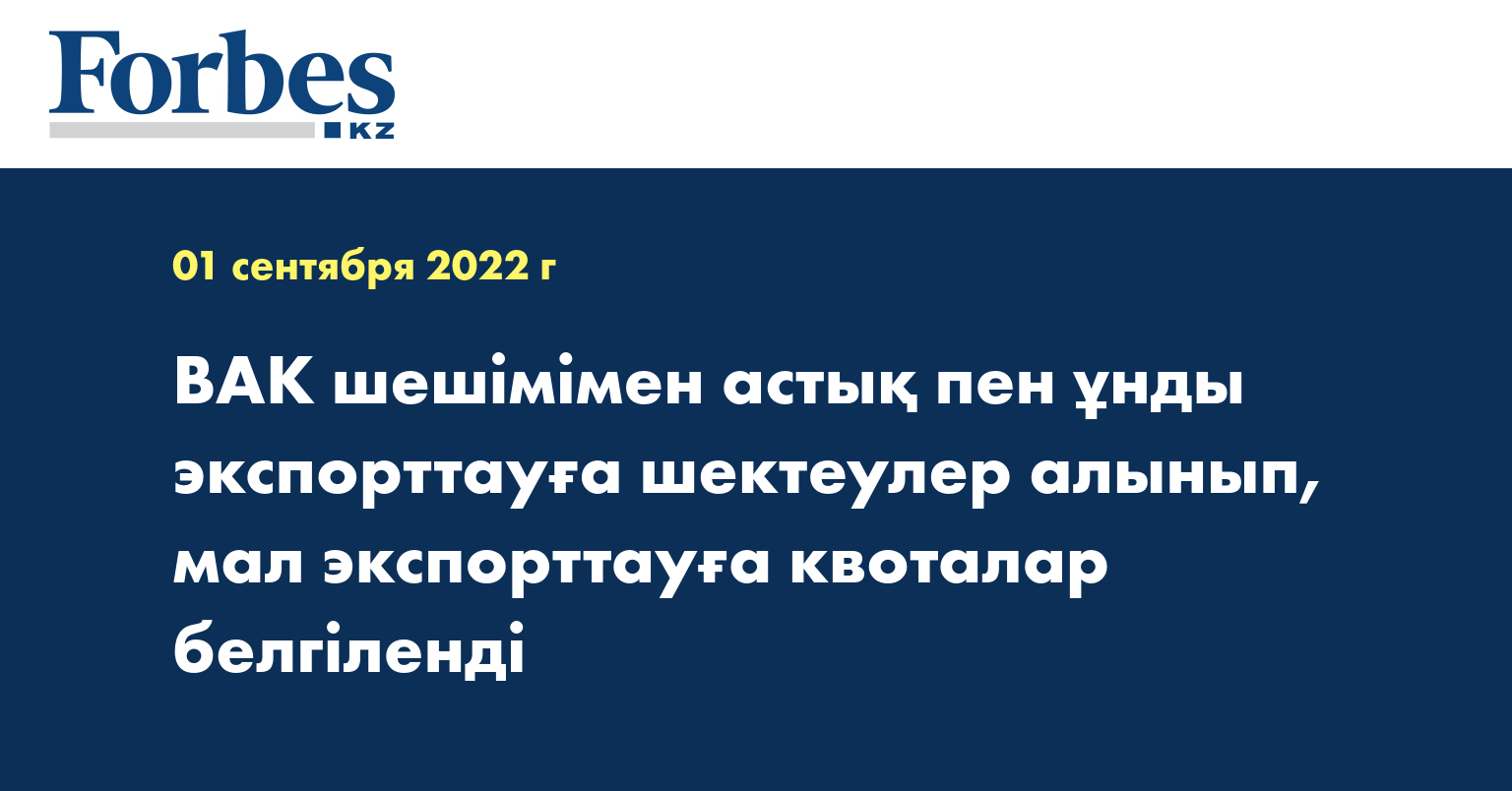2022 жылғы 21 қаңтар мен 21 шілде аралығында ірі қара және ұсақ малды экспорттауға тыйым салынған болатын.
