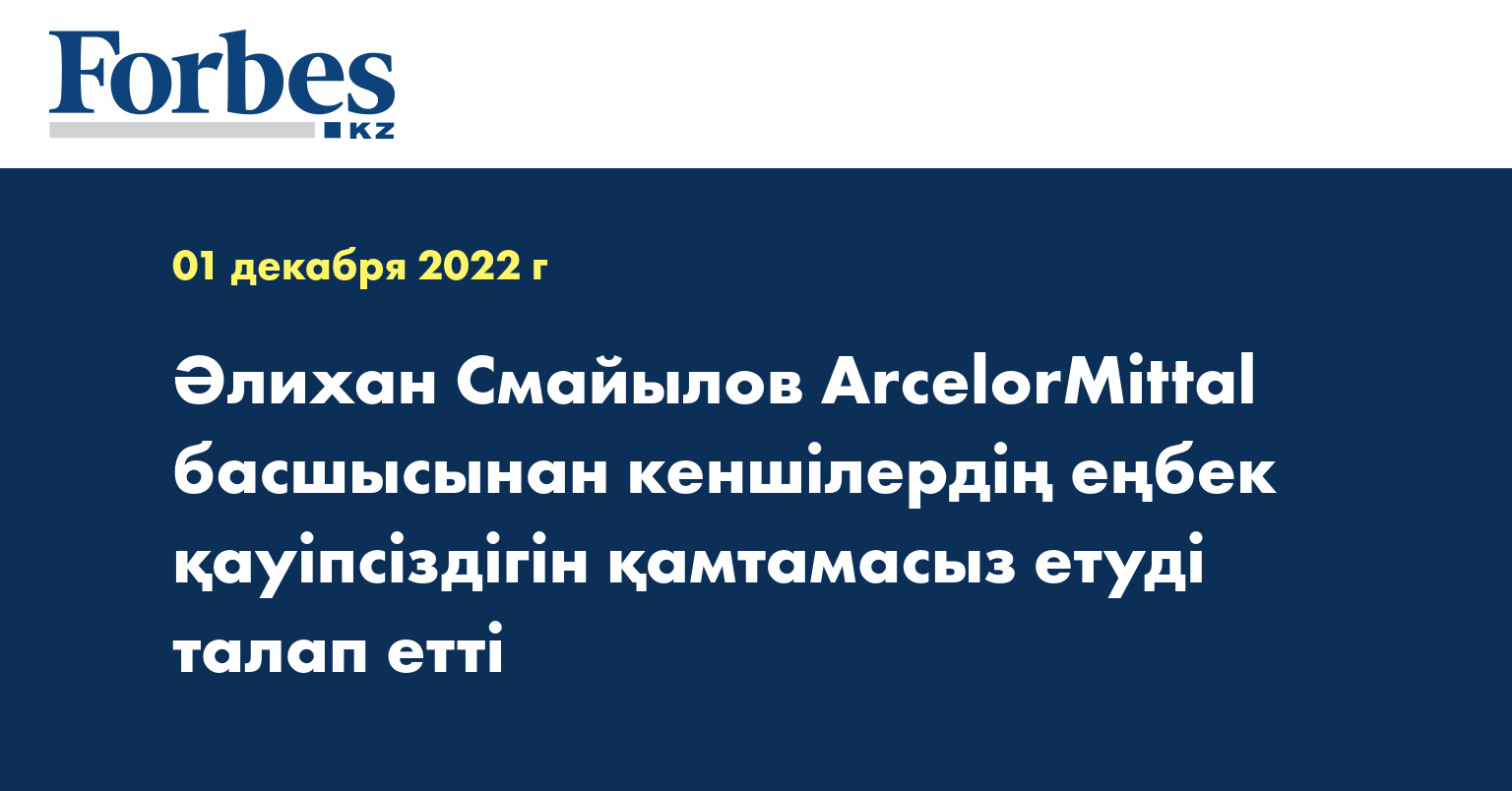 ҚР Премьер-Министрі Әлихан Смайылов ArcelorMittal компаниясының ТМД бойынша вице-президенті Виджай Гоялмен кездесу өткізді. Бұл туралы Үкіметтің сайты хабарлайды.
