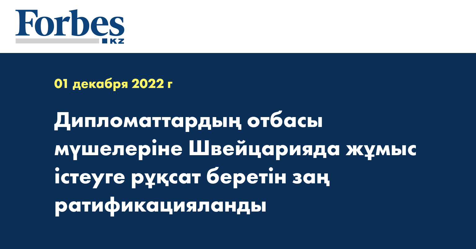 Мемлекет басшысы Қасым-Жомарт Тоқаев «Қазақстан Республикасының Үкіметі мен Швейцария Федералдық Кеңесі арасындағы дипломатиялық өкілдіктер, халықаралық ұйымдар жанындағы тұрақты өкілдіктер және консулдық мекемелер қызметкерлерінің отбасы мүшелерінің ақылы еңбек қызметі туралы келісімді ратификациялау туралы» Қазақстан Республикасының Заңына қол қойды. Бұл туралы Ақорда хабарлайды.