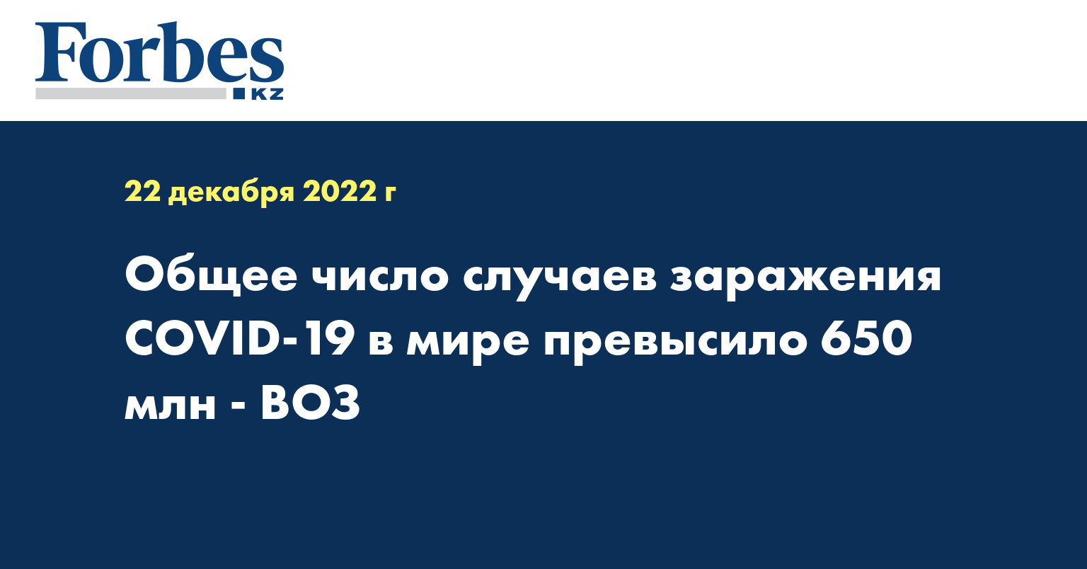 Общее число подтвержденных случаев заражения COVID-19 в мире превысило 650 млн. Об этом свидетельствуют последние данные Всемирной организации здравоохранения, передает Синьхуа.
