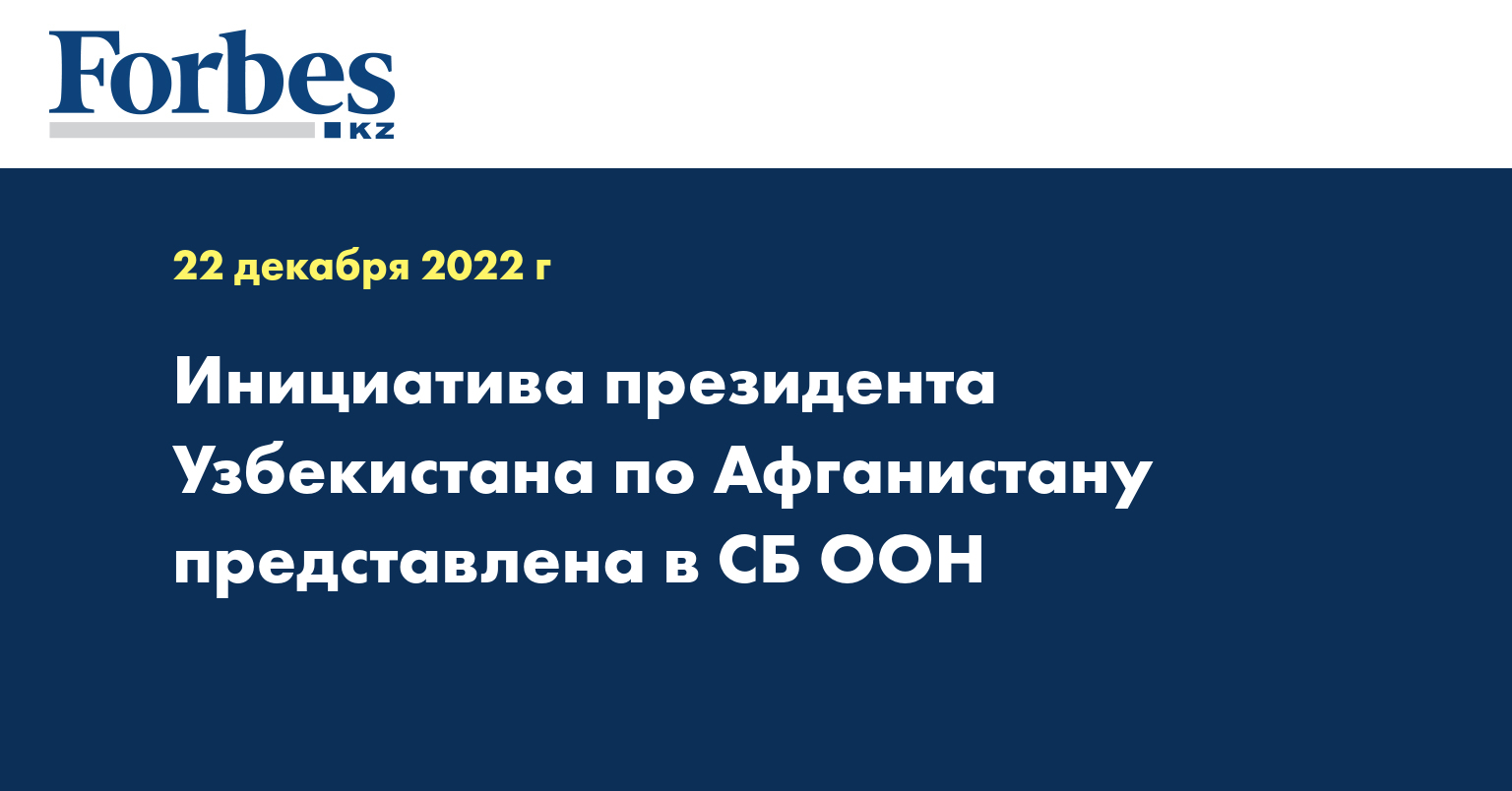Инициатива президента Узбекистана Шавката Мирзиеева о создании под эгидой и при поддержке ООН международной переговорной группы высокого уровня по урегулированию ситуации в Афганистане для согласования с властями этой страны поэтапного выполнения требований мирового сообщества представлена членам Совета Безопасности ООН. Об этом сообщило в среду информагентство "Дуне" при МИД республики, передает Синьхуа.