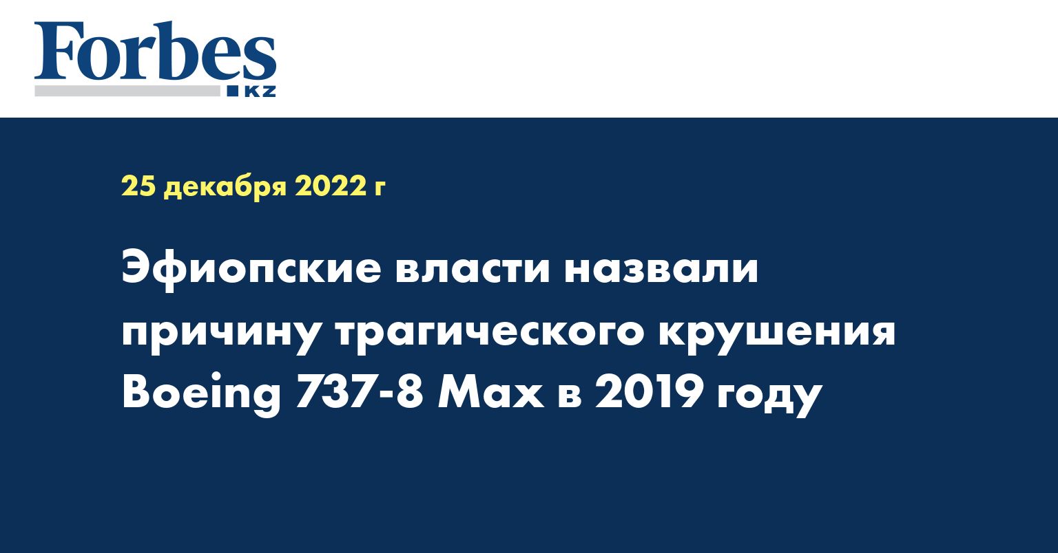 Крушение самолета Boeing 737-8 Max авиакомпании Ethiopian Airlines в 2019 году, в результате которого погибли 157 человек, было вызвано неисправностью защитной системы, заявили эфиопские власти в своем окончательном отчете в пятницу, сообщает Синьхуа.