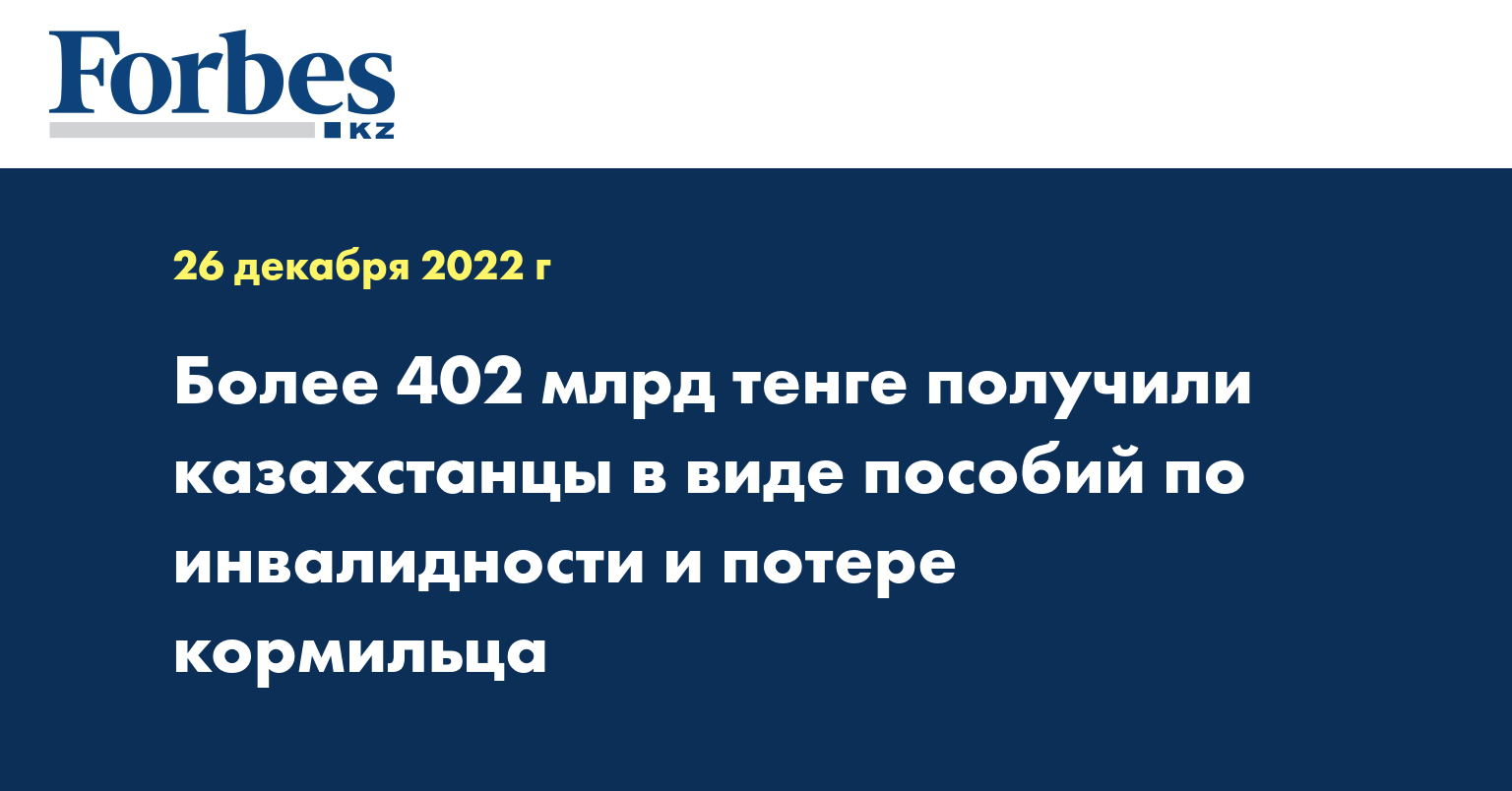 На 1 декабря 2022 года средний размер государственных социальных пособий по инвалидности составил 54 062 тенге, государственных социальных пособий по случаю потери кормильца – 50 368 тенге.