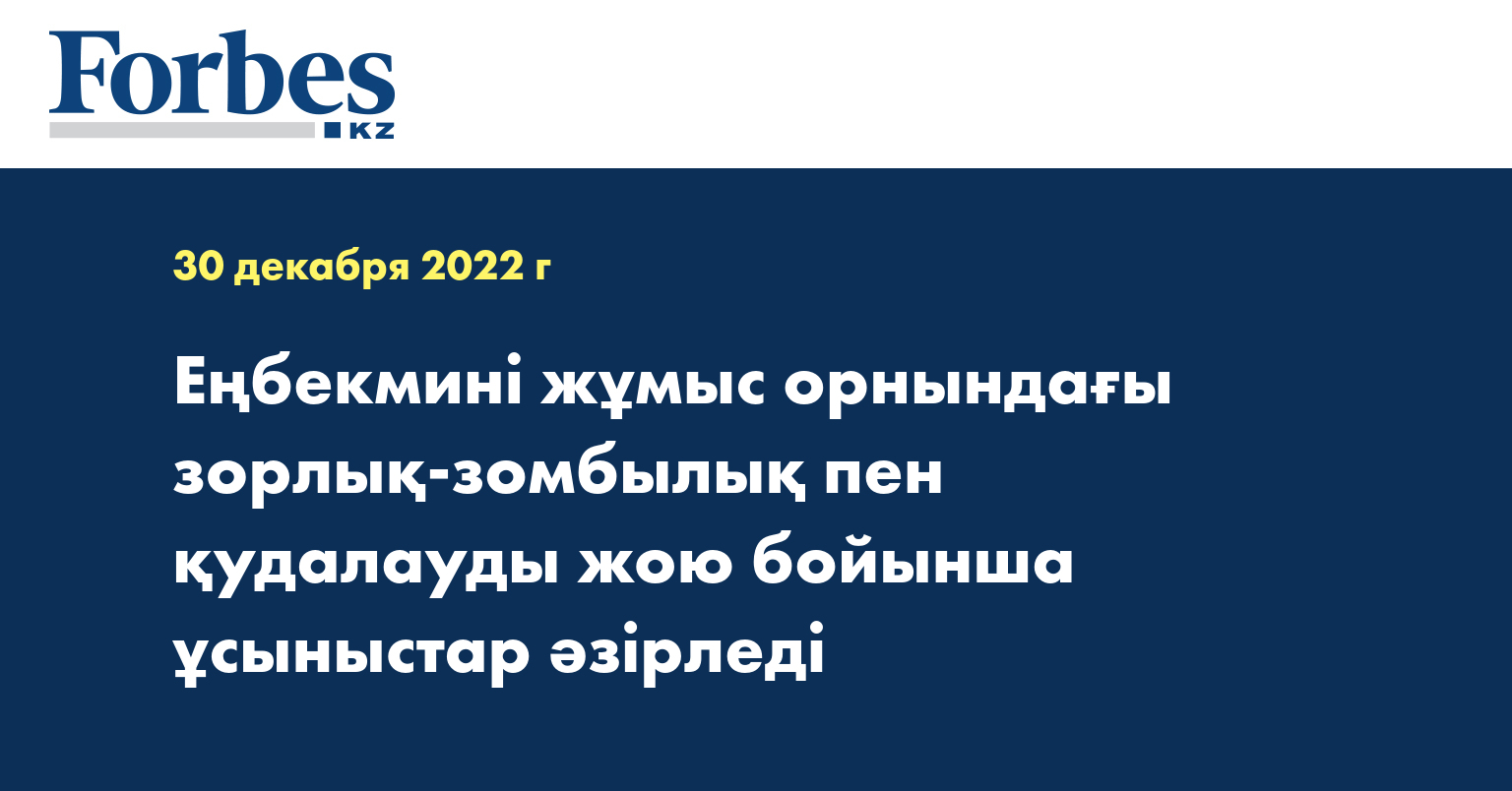 ҚР Еңбек және халықты әлеуметтік қорғау министрлігі (Еңбекмині) жұмыс орнындағы зорлық-зомбылық пен қудалауды жоюға бағытталған бірқатар заңнамалық және нормативтік құқықтық актілерге толықтырулар мен өзгерістер енгізу жөнінде ұсыныстар әзірледі.