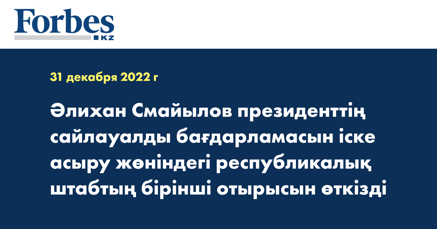 ҚР Премьер-Министрі Әлихан Смайылов ҚР Президенті Қасым-Жомарт Тоқаевтың 2023-2029 жылдарға арналған «Әділетті Қазақстан: бәріміз және әрқайсымыз үшін. Қазір және әрдайым» сайлауалды бағдарламасын іске асыру жөніндегі республикалық штабтың бірінші отырысын өткізді, деп хабарлайды primeminister.kz.