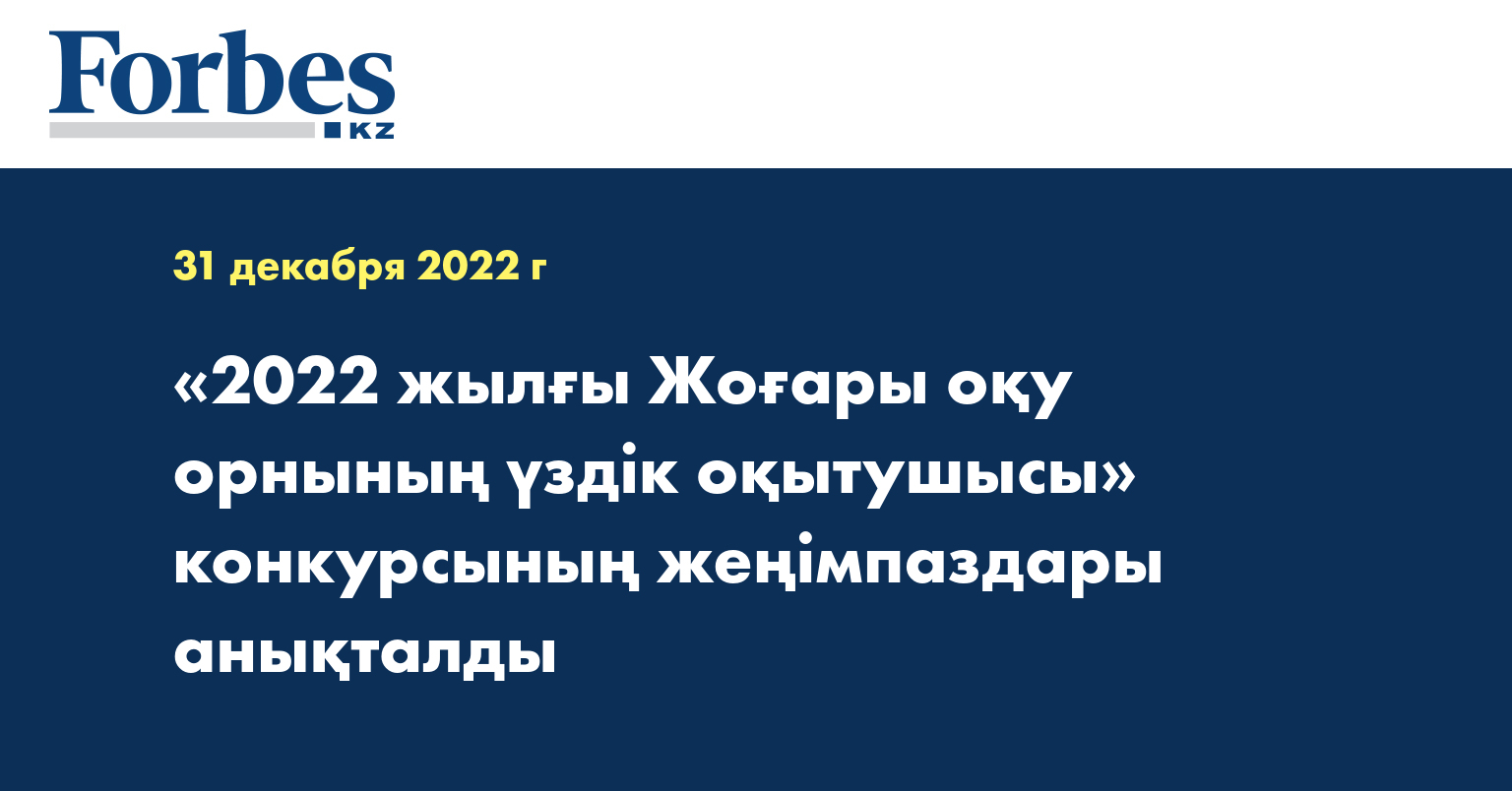 «2022 жылғы Жоғары оқу орнының үздік оқытушысы» конкурсы жеңімпаздарының есімдері белгілі болды. Республикалық конкурстық комиссия өз мамандығы бойынша үздіктердің ішінен үздіктерді таңдады. Қазақстандық 43 ЖОО-ның 150 оқытушысы жеңімпаз атанды.