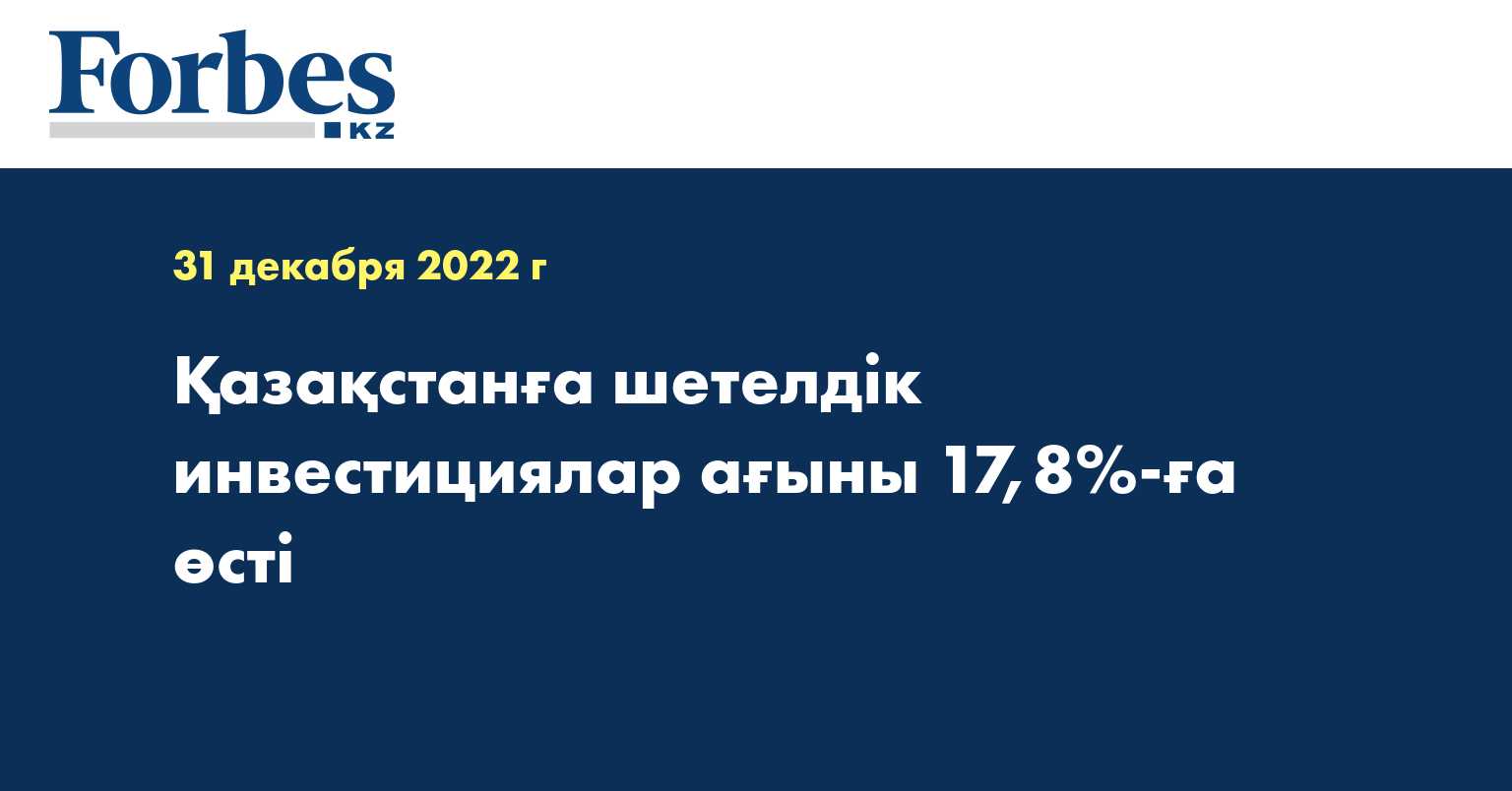 2022 жылдың 9 айының қорытындысы бойынша Қазақстанға тікелей шетелдік инвестициялардың (ТШИ) жалпы ағыны 17,8%-ға өсті және 22,1 млрд АҚШ долларын құрады (2021 жылдың 9 айы бойынша $18,7 млрд). Үш тоқсанның көрсеткішін бүкіл 2021 жылы тартылған инвестициялар көлемімен салыстыруға болады ($23,8 млрд).