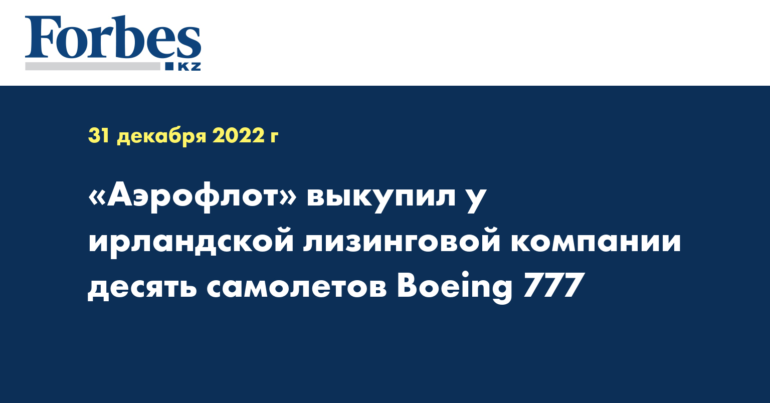 У российского «Аэрофлота» в собственности появилось десять самолетов Boeing 777. Компания выкупила их у ирландской компании, которая предоставила суда в лизинг в 2013–2014 годах. Об этом сообщает Forbes.ru со ссылкой на ТАСС и пресс-службу перевозчика.