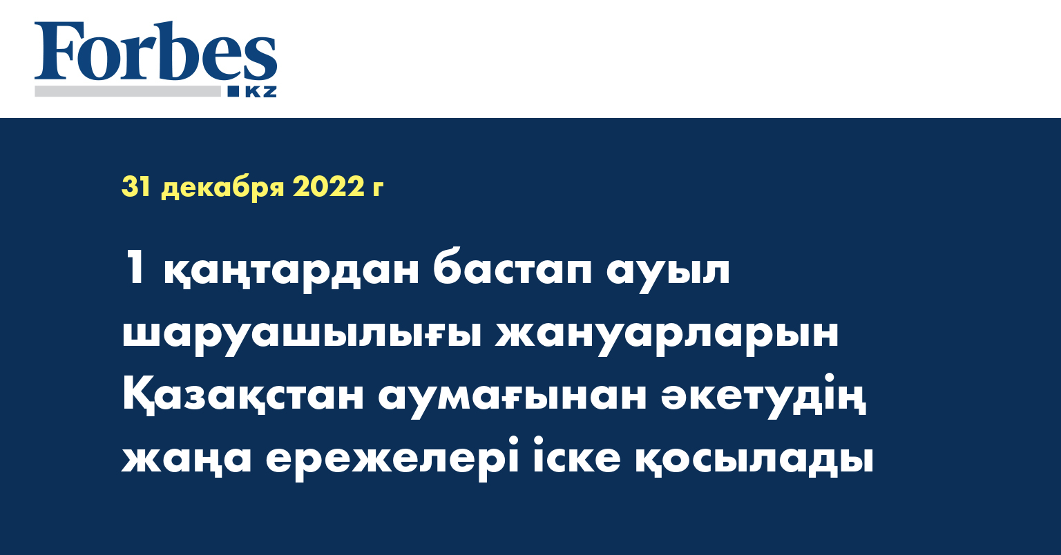 «Ауыл шаруашылығы жануарларын Қазақстан Республикасының аумағынан әкету кейбір мәселелері туралы» Қазақстан Республикасы Ауыл шаруашылығы министрінің 2022 жылғы 19 желтоқсандағы № 428 бұйрығына сәйкес 2022 жылғы 31 желтоқсан мен 2023 жылдың 1 наурыз аралығында Қазақстан Республикасы Ауыл шаруашылығы министрлігі сандық шектеулерді (квота) енгізді: