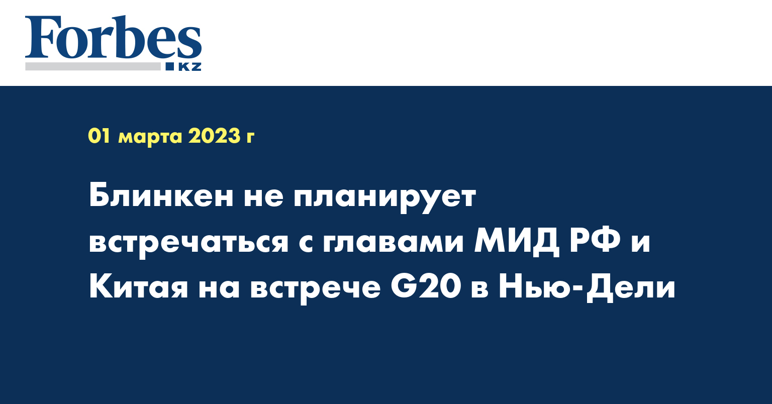 Госсекретарь Энтони Блинкен заявил в среду, что не планирует встречаться с министрами иностранных дел России и Китая во время встречи «Большой двадцатки» (G20) в Нью-Дели, передает "Голос Америки".