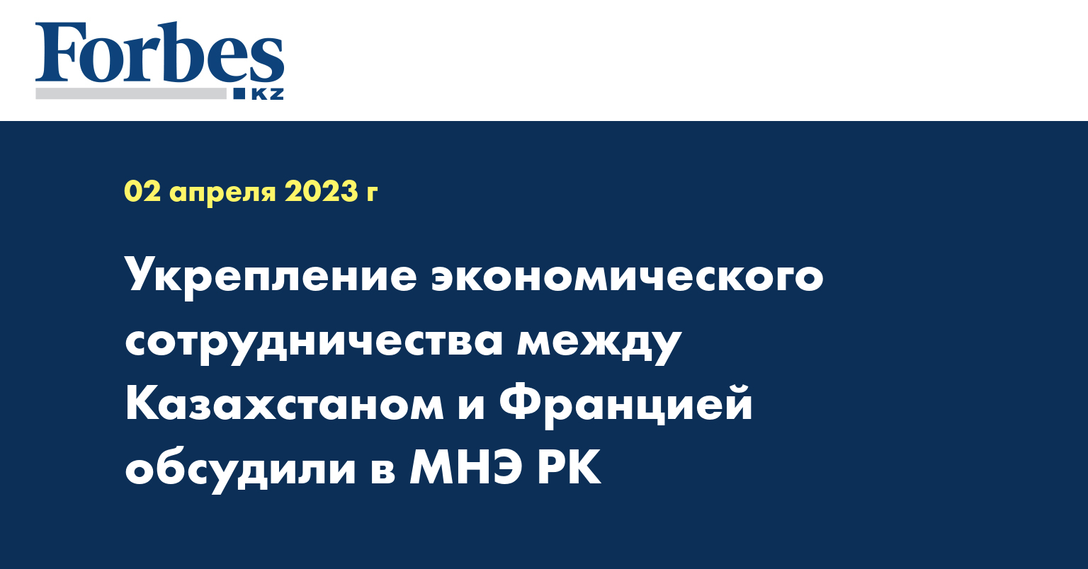 Напомним, что 6 апреля состоится визит Специального представителя Президента Франции Изабель Дюмон в Казахстан Укрепление экономического сотрудничества между Казахстаном и Францией обсудили в МНЭ РК