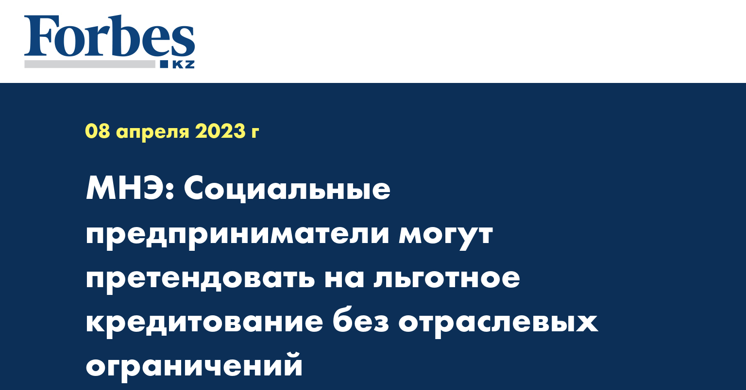 Субъекты соцпредпринимательства, вошедшие в соответствующий Реестр, могут претендовать на льготное кредитование без отраслевых ограничений. Это субсидирование ставки вознаграждения по ставке 7% на конечного заемщика на сумму кредита до 1,5 млрд. тенге – для инвестиционных целей, до 500 млн. тенге – на пополнение оборотных средств.