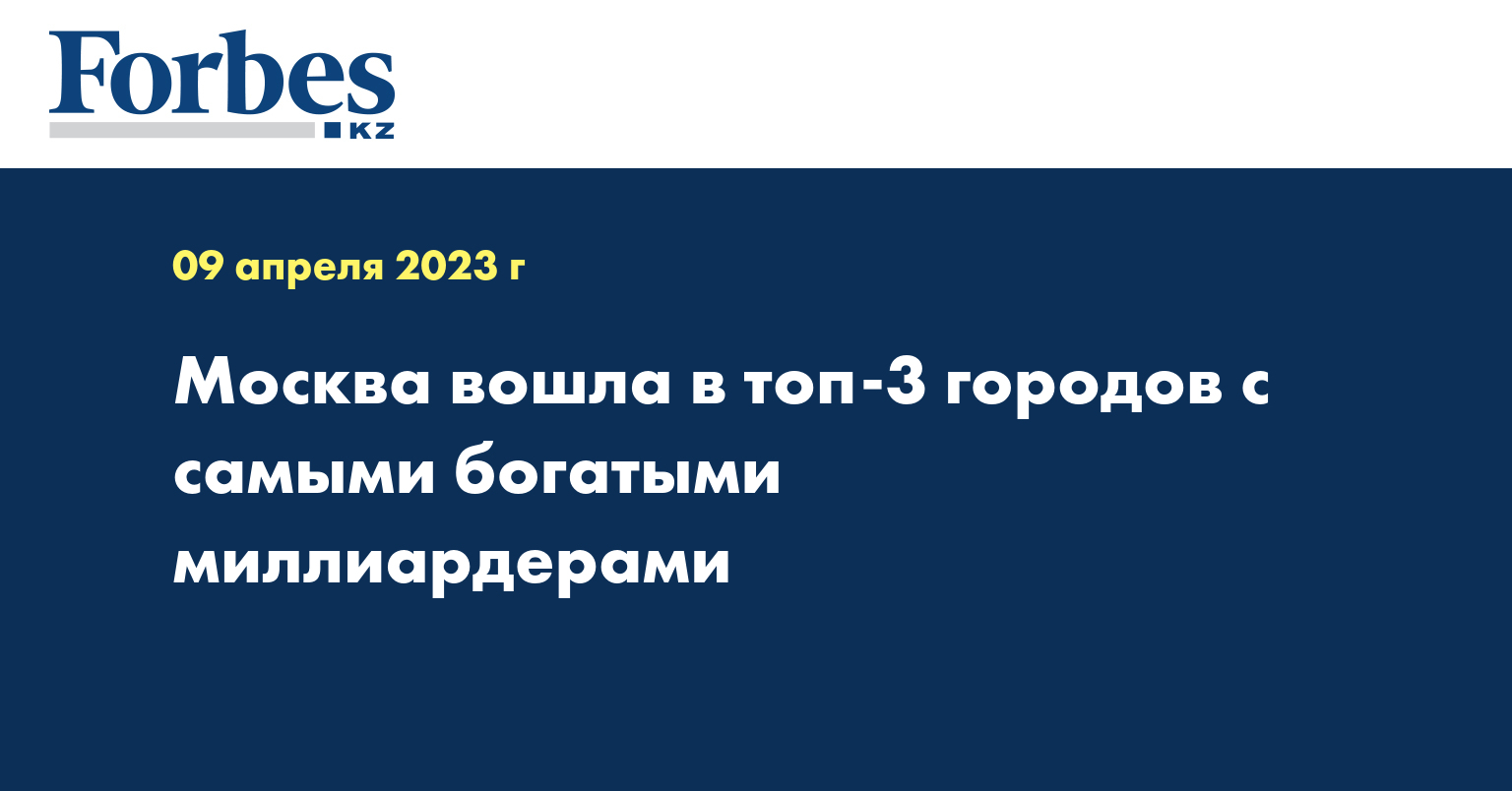 Общее состояние всех московских миллиардеров издание оценило в $307 млрд, что на $92 млрд больше, чем в 2022 году. По этому показателю город занял третье место среди мировых мегаполисов. Богаче миллиардеры только в Нью-Йорке, где их капиталы составляют почти $617 млрд, и в Париже, где состояния богатейших горожан достигают $409 млрд, пишет американский Forbes.