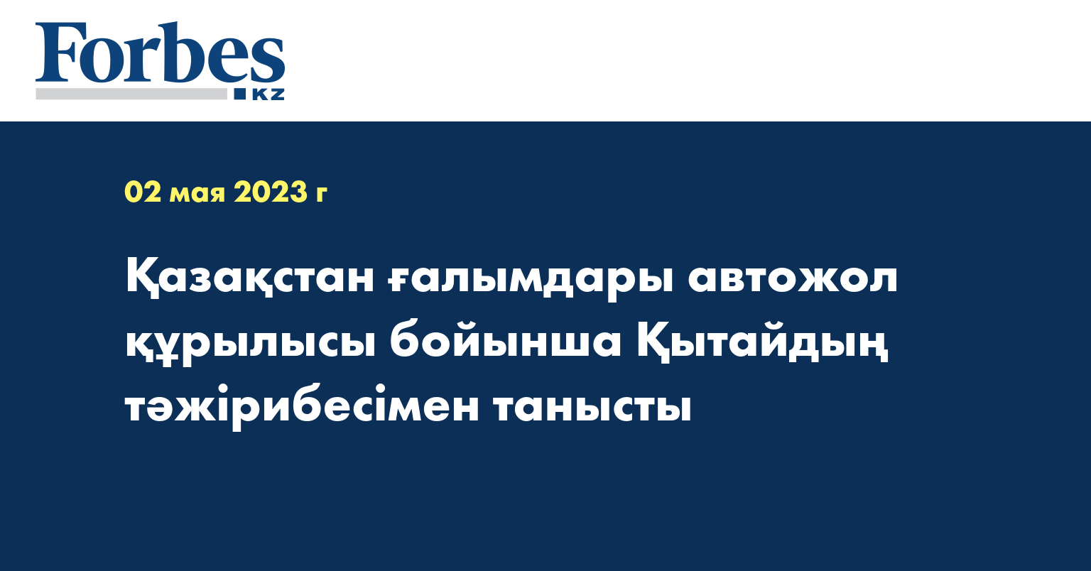 Қазақстан жол ғылыми-зерттеу институтының сарапшылары Қытайға барып, көршілес елдің жол құрылысы саласын нормативтік тұрғыда реттеу, жобалау, құрылысты жүргізу, жолды пайдаланып, автожол құрылысындағы экономикасымен танысып жатыр. Бұған қоса, қазақстандық мамандар Қытай Халық Республикасының жол құрылысы саласындағы техникалық базасымен жақынырақ танысуға мүмкіндік алады.