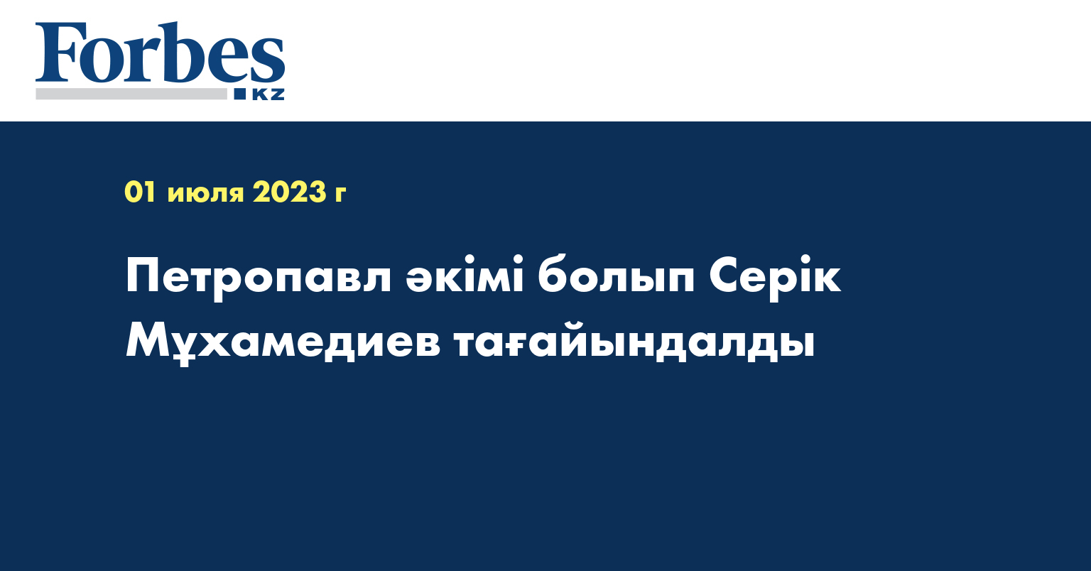 Солтүстік Қазақстан облысы әкімінің өкімімен Серік Мұхамедиев Петропавл қаласының әкімі болып тағайындалды. Бұл жайында СҚО әкімінің баспасөз қызметі хабарлады.