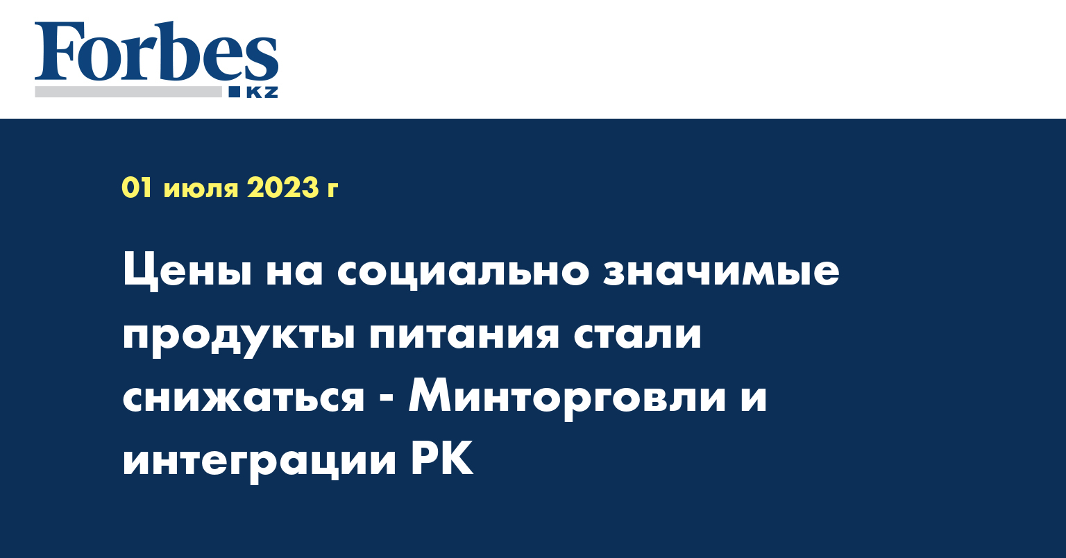 Впервые за полтора года официальная статистика регистрирует снижение недельного индекса цен на социальные продукты питания. Недельный показатель снижения составил -0,1%, за месяц – 0%. За первые шесть месяцев этого года индекс цен на СЗПТ составил 4,2%, это в 4 раза меньше аналогичного периода 2022 года (17,2%), передает пресс-служба Министерства торговли и интеграции РК.