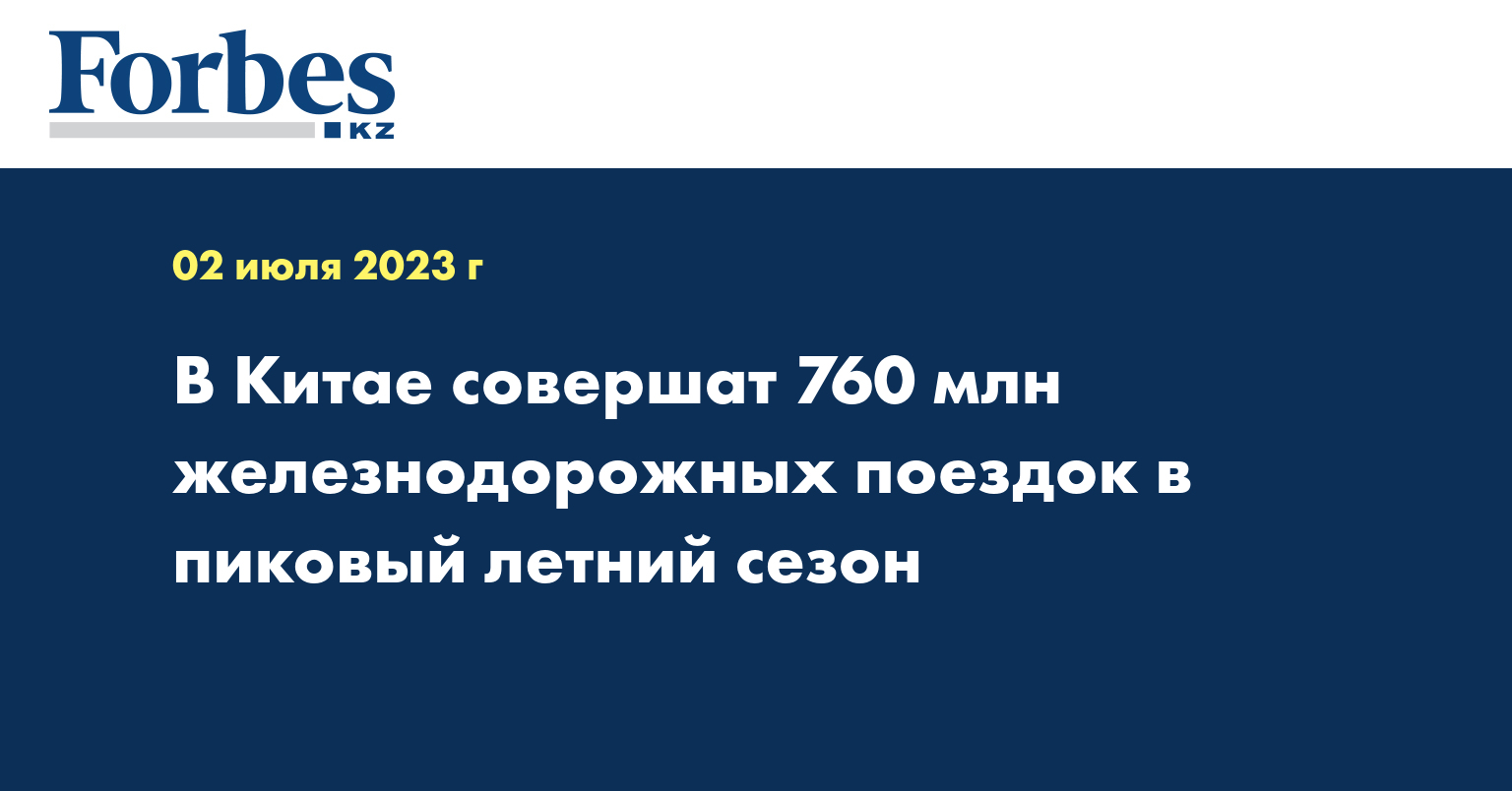 В Китае, как ожидается, будет совершено 760 млн железнодорожных поездок в пиковый летний сезон 2023 года, который начинается в субботу. Об этом свидетельствуют данные Китайской государственной железнодорожной корпорации, сообщает Синьхуа.
