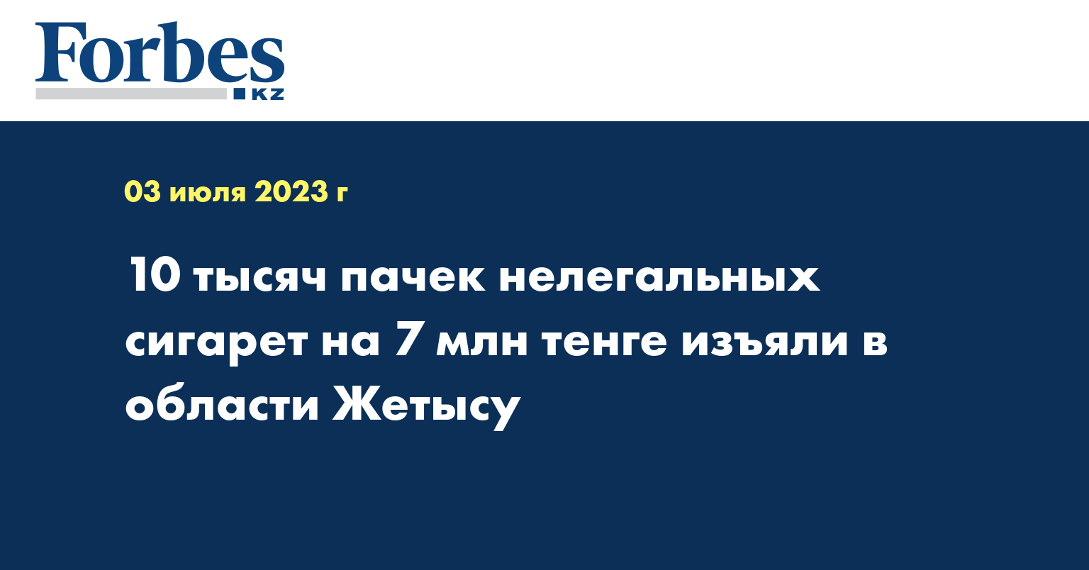 - Нелегальную табачную продукцию в количестве более 10 тысяч пачек изъяти в области Жетысу. Об этом передает пресс-службa Агентства по финансовому мониторингу.