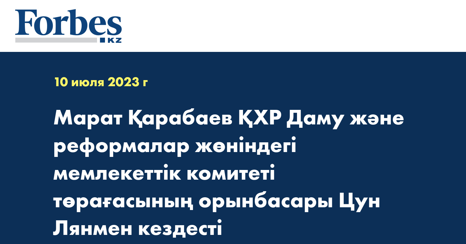 ҚР Индустрия және инфрақұрылымдық даму министрі Марат Қарабаев ҚХР Даму және реформалар жөніндегі мемлекеттік комитеті төрағасының орынбасары Цун Лянмен кездесті