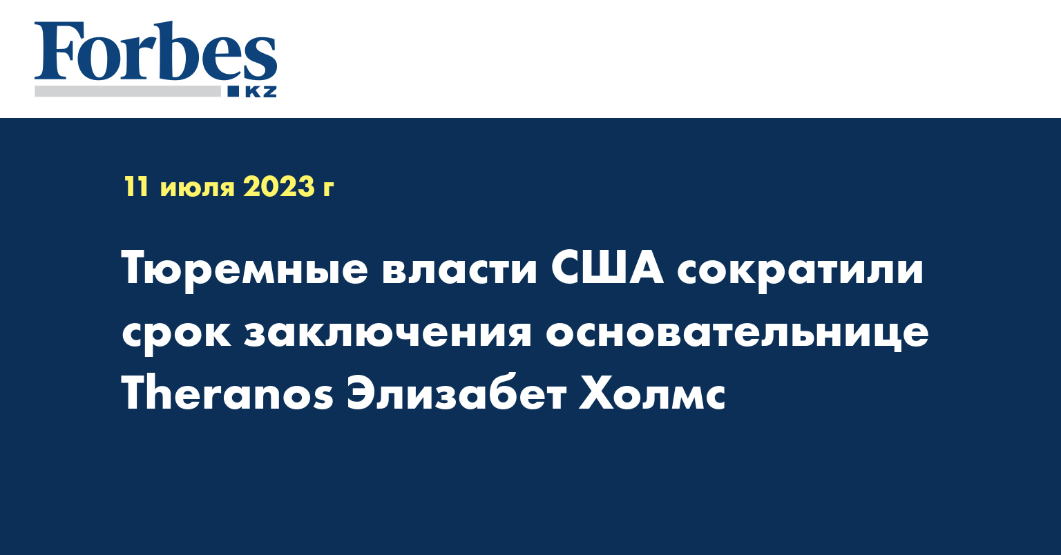 Бюро тюрем США обновило дату освобождения из тюремного заключения основательница стартапа Theranos (технология медицинских анализов по одной капле крови) Элизабет Холмс Theranos: теперь это 29 декабря 2032 года. Об этом сообщает Business Insider со ссылкой на данные организации. Холмс прибыла в тюрьму для отбывания срока 30 мая 2023 года, новая дата освобождения означает, что она отсидит в камере 9 лет и шесть месяцев вместо 11 лет и трех месяцев по приговору, пишет издание, передает Forbes.ru.