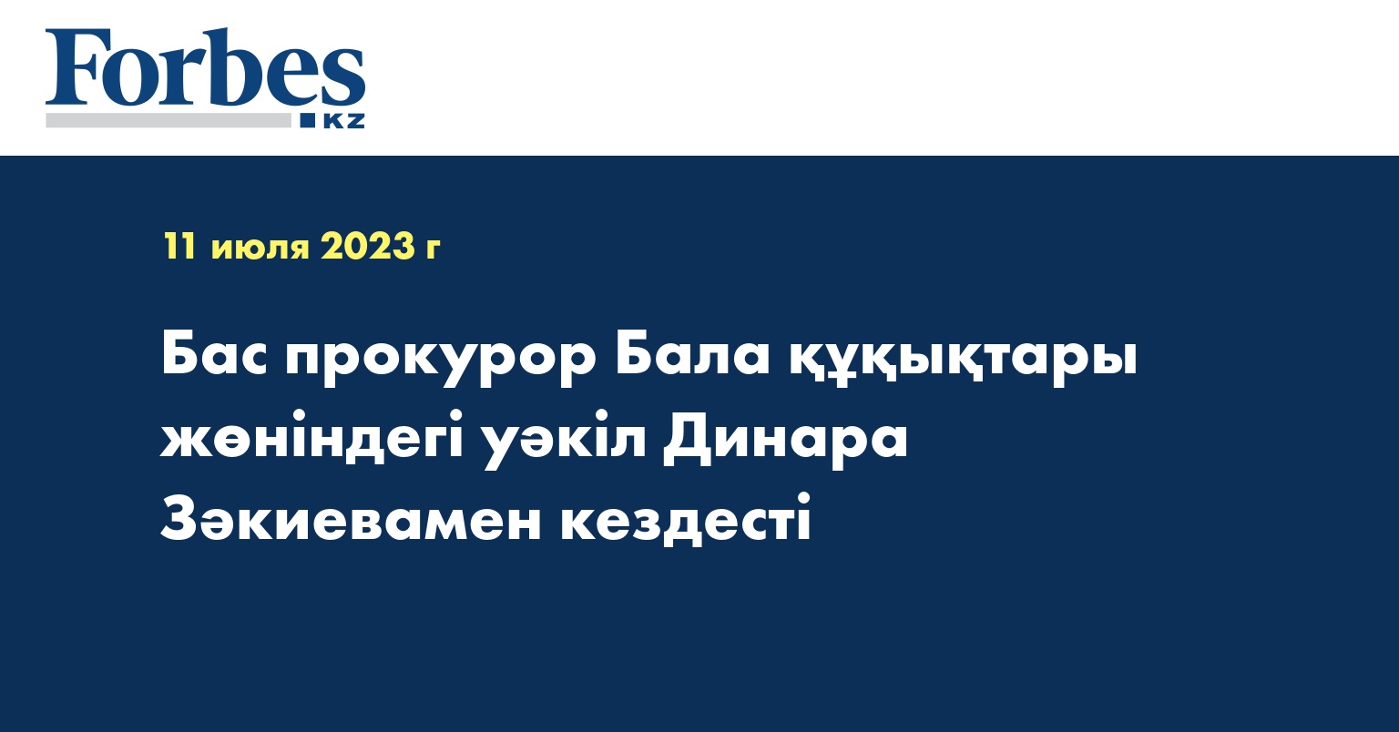 Бас прокурор Берік Асылов Қазақстан Республикасындағы Бала құқықтары жөніндегі уәкіл Динара Закиевамен кездесті, деп хабарлайды ҚР Бас прокуратурасының баспасөз қызметі.