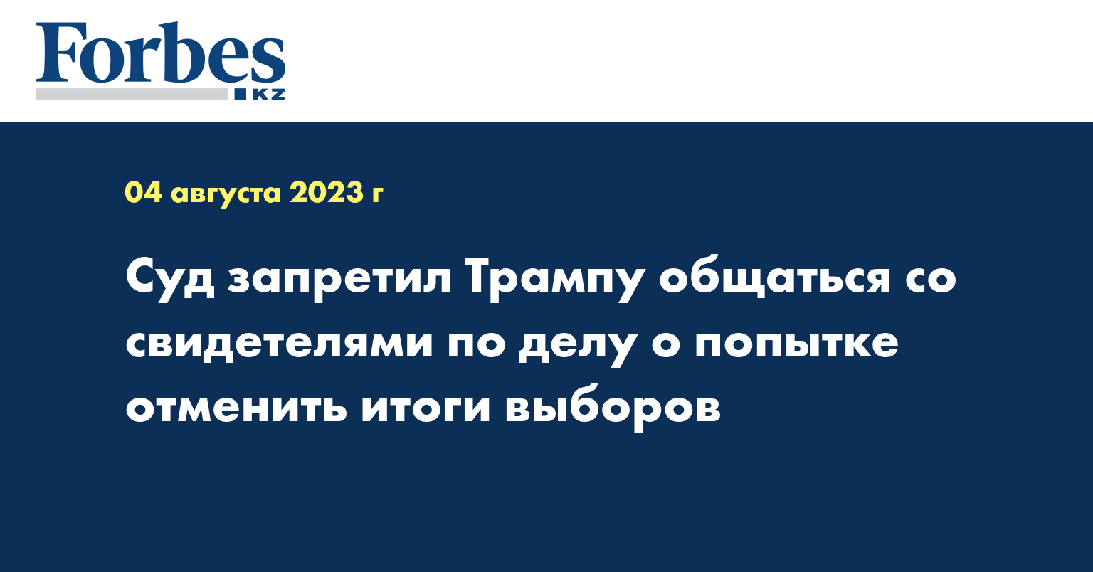 Бывший президент США Дональд Трамп останется на свободе на время судебного процесса по делу о попытках помешать утверждению итогов президентских выборов 2020 года при нескольких условиях. Суд в том числе запретил Трампу обсуждать подробности дела со свидетелями, общение будет возможно только через адвокатов, передает Forbes.ru со ссылкой на CNBC.