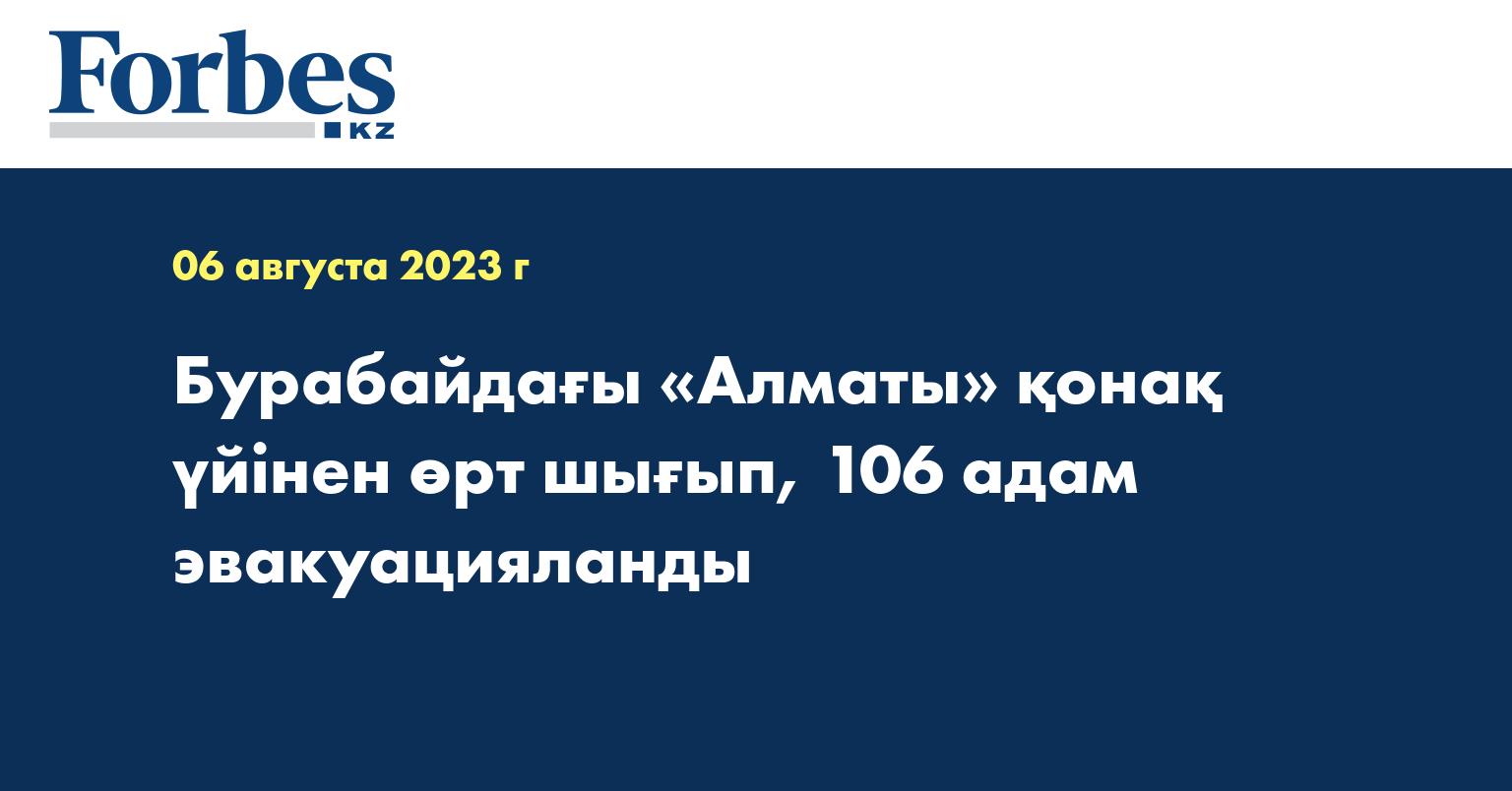 Бурабайдағы «Алматы» қонақ үйінің ғимаратынан өрт шығып, 106 адам эвакуацияланды, деп хабарлайды ҚазАқпарат ТЖМ баспасөз қызметіне сілтеме жасап.